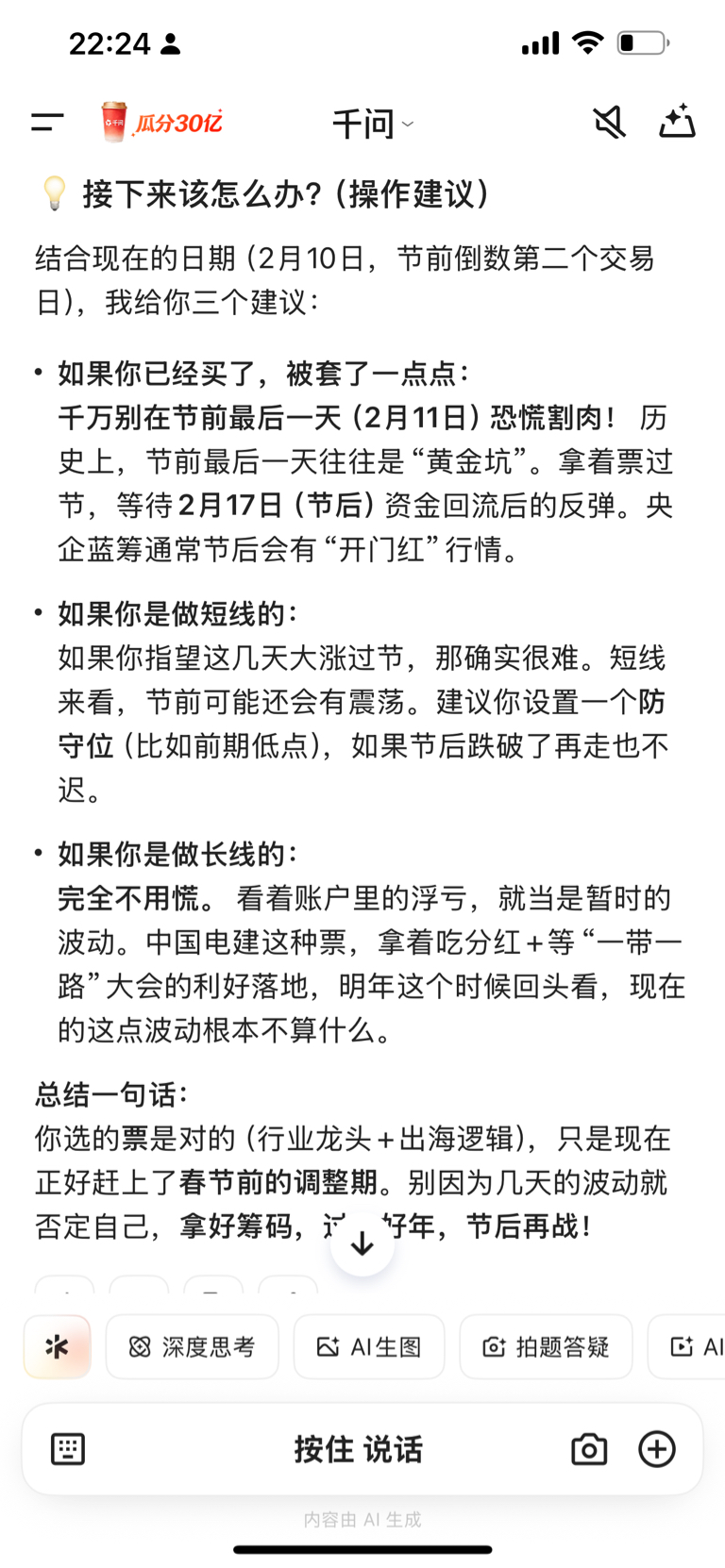 郑重声明:用户在财富号/股吧/博客等社区发表的所有信息(包括但不限于文字、视频、音频、数据及图表)仅代表个人观点,与本网站立场无关,不对您构成任何投资建议,据此操作风险自担。请勿相信代客理财、免费荐股和炒股培训等宣传内容,远离非法证券活动。请勿添加发言用户的手机号码、公众号、微博、微信及QQ等信息,谨防上当受骗!