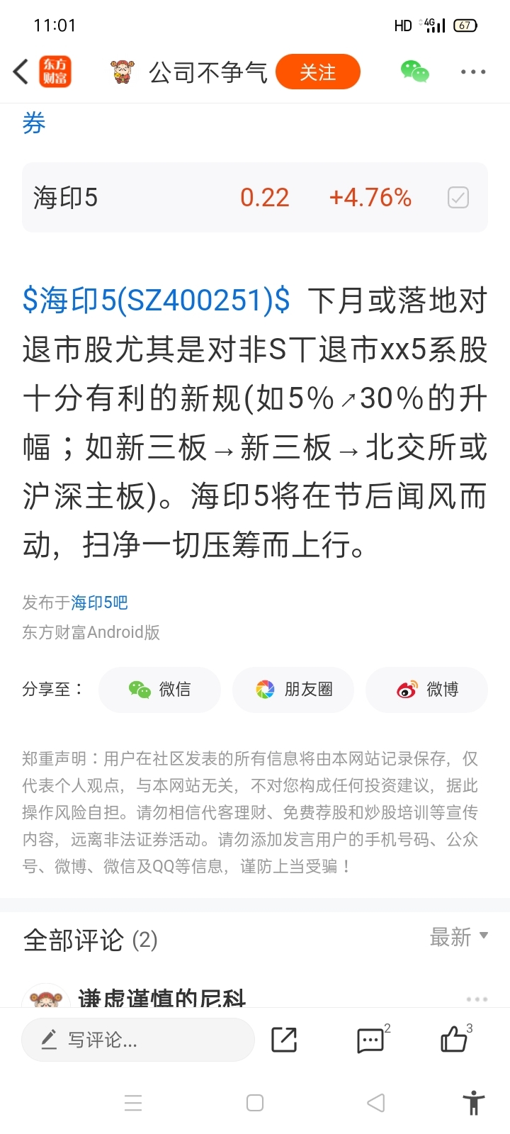 温馨提示: 1.根据《证券法》规定,禁止编造、传播虚假信息或者误导性信息,扰乱证券市场;2.用户在本社区发表的所有资料、言论等仅代表个人观点,与本网站立场无关,不对您构成任何投资建议。用户应基于自己的独立判断,自行决定证券投资并承担相应风险。《东方财富社区管理规定》