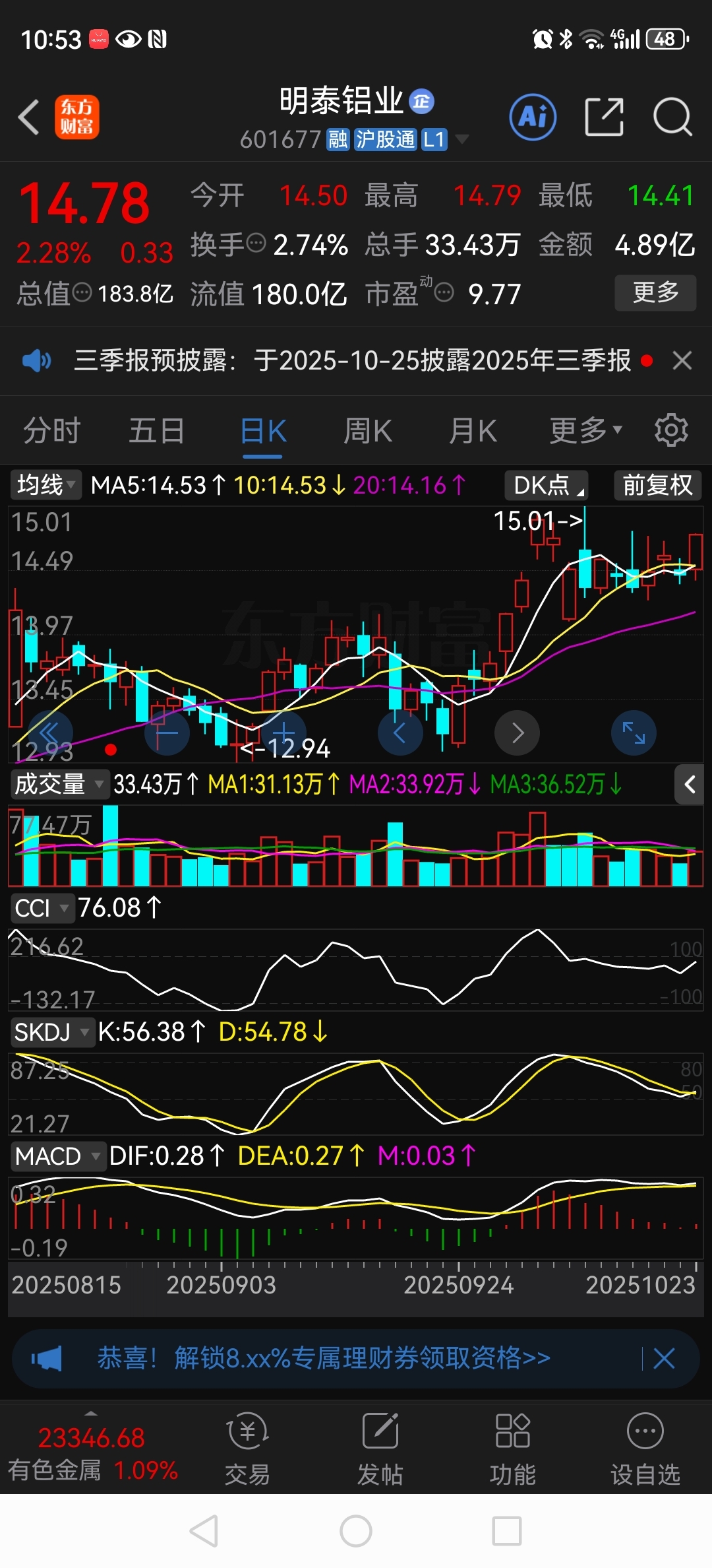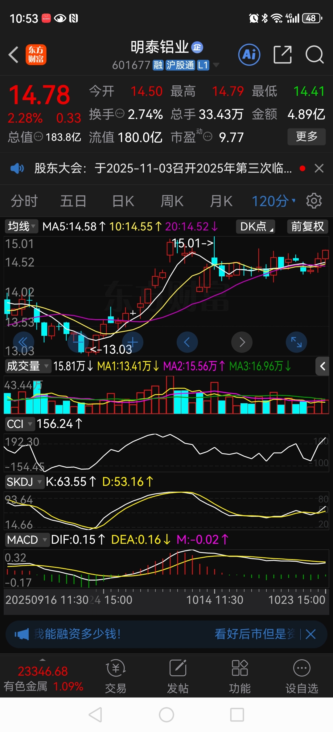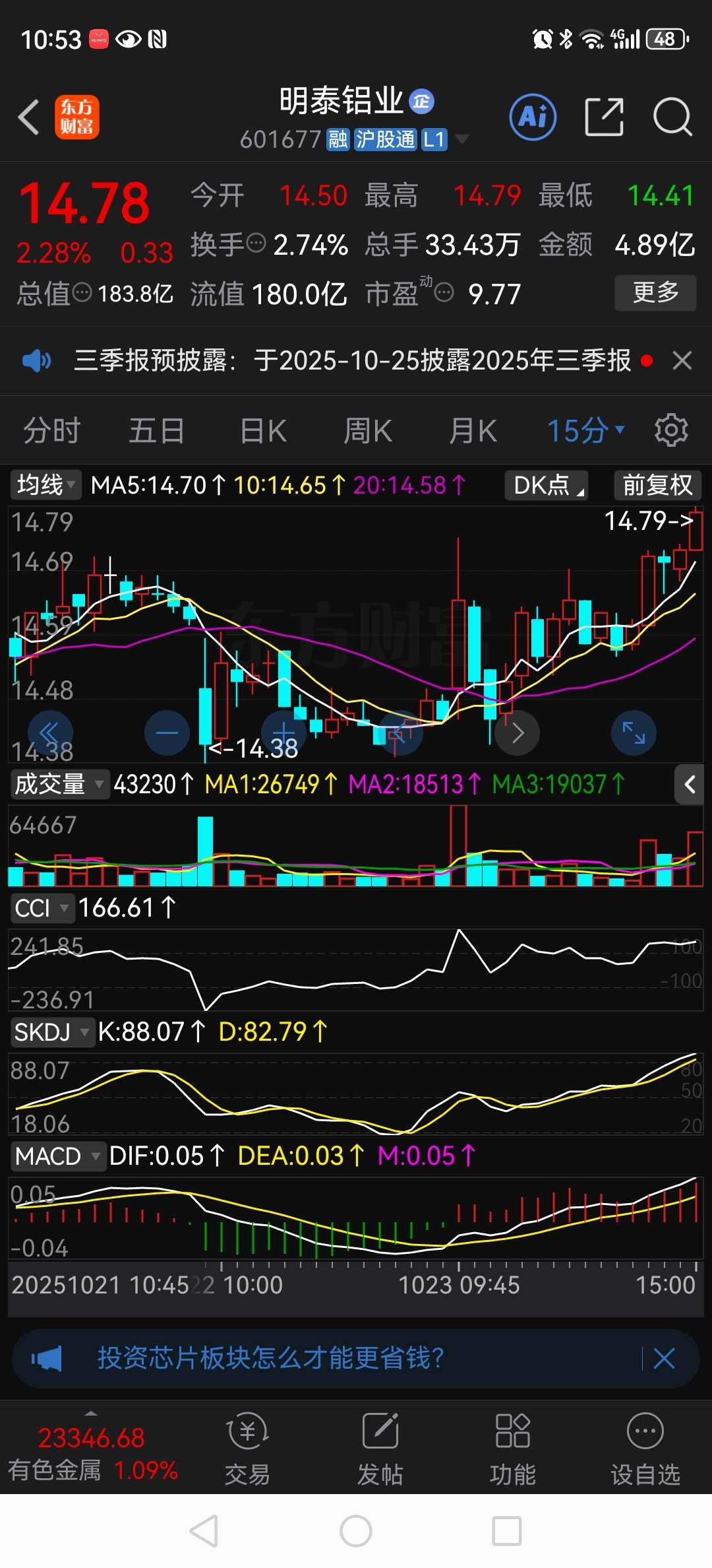 $明泰铝业(SH601677)$ 个人看法,年底大概率会站上去年的高点,能不能冲击20不好说,明年如果能高派现、高送转、业绩两位数高增长……一定会站上20……