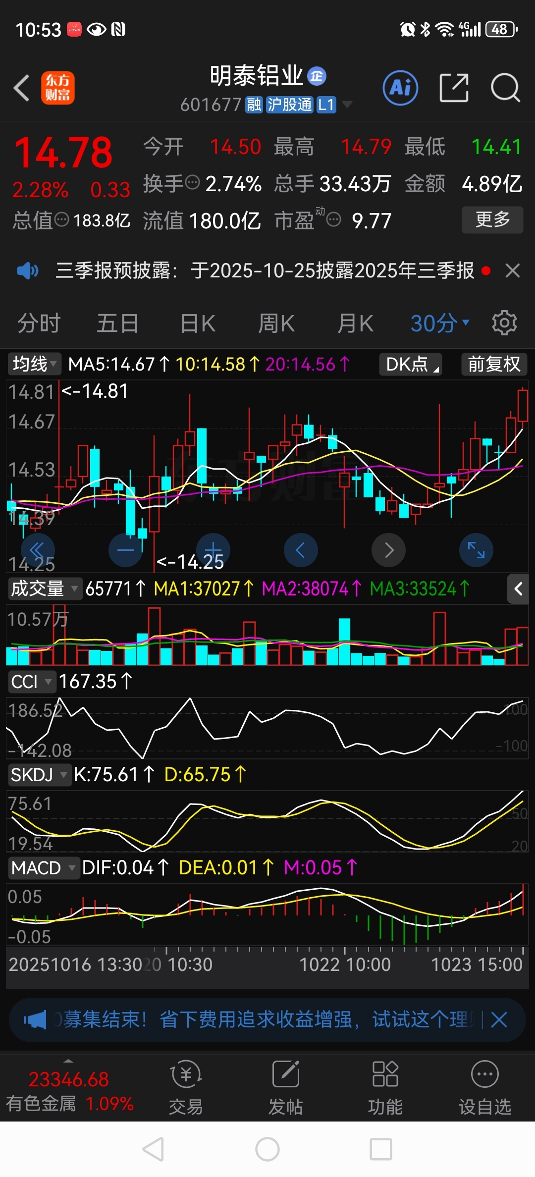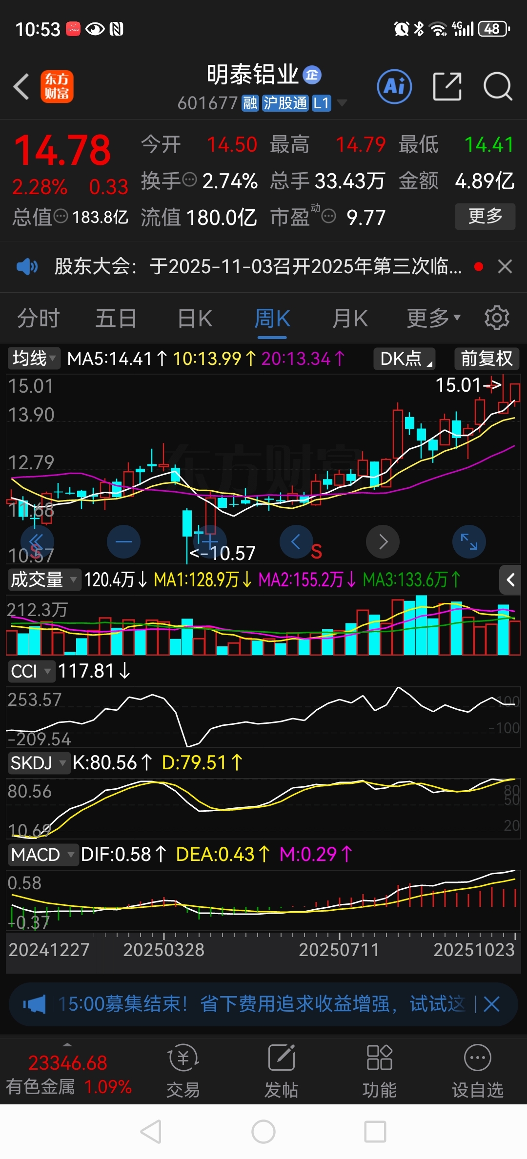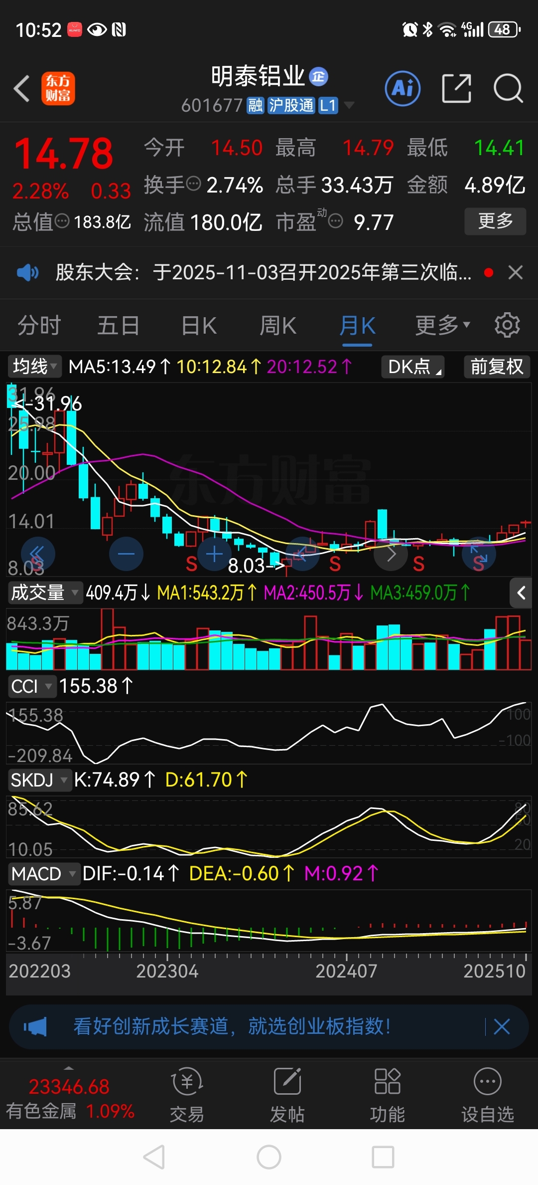 $明泰铝业(SH601677)$ 个人看法,年底大概率会站上去年的高点,能不能冲击20不好说,明年如果能高派现、高送转、业绩两位数高增长……一定会站上20……