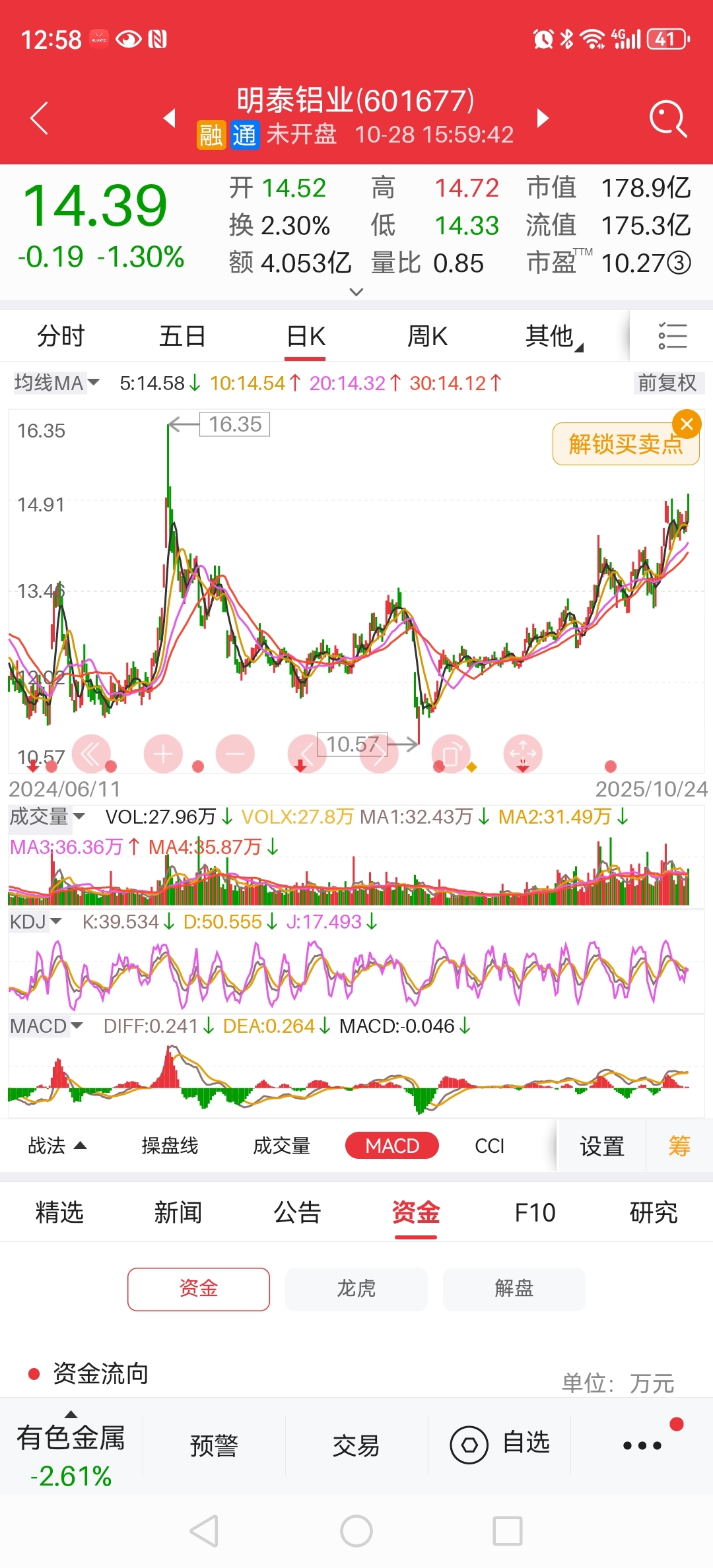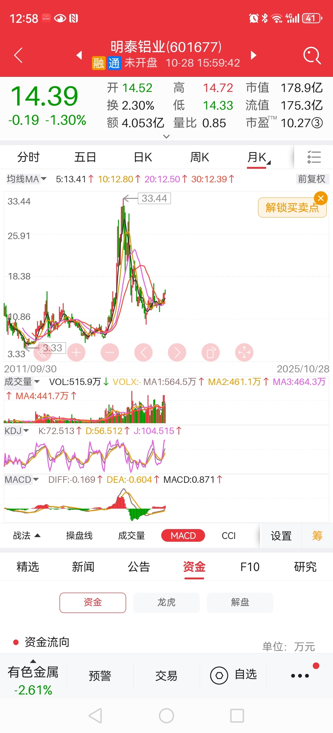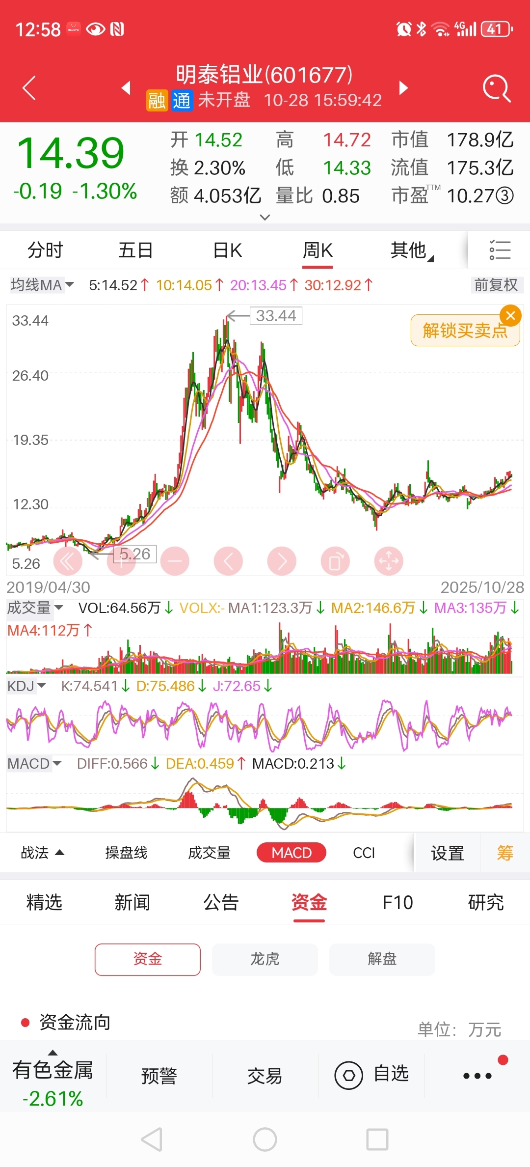 $明泰铝业(SH601677)$ 短期看明泰铝业己处高位,拉长时间看还在底部区域……
