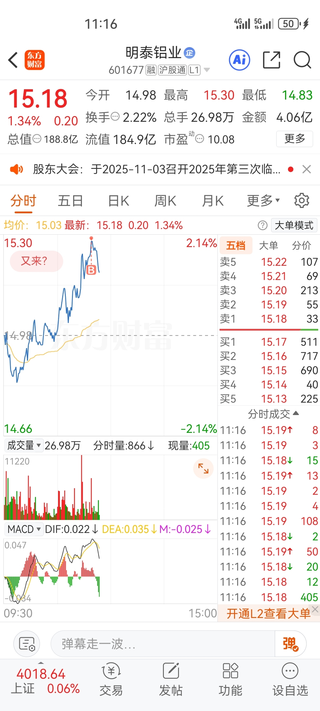 $明泰铝业(SH601677)$ 对不起大家了,我明天就走。