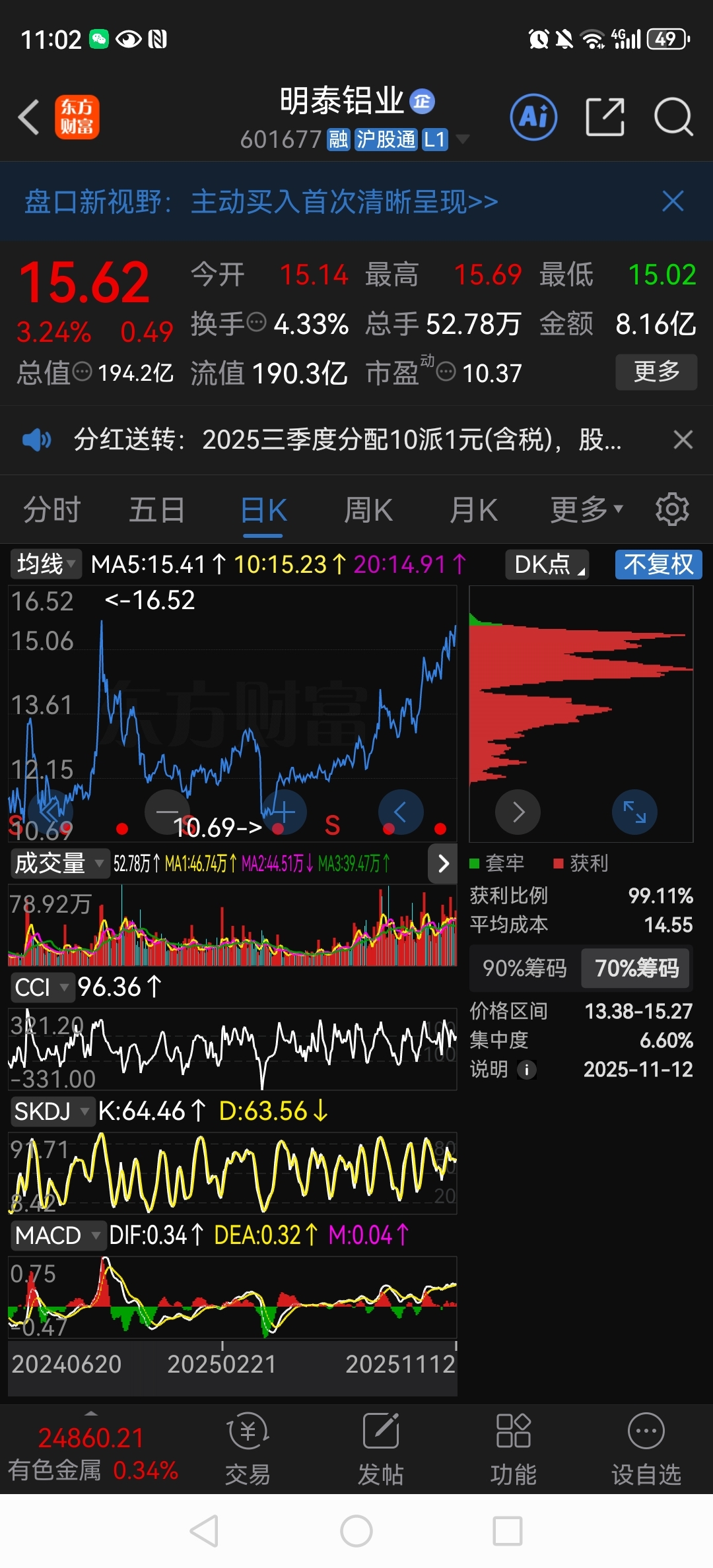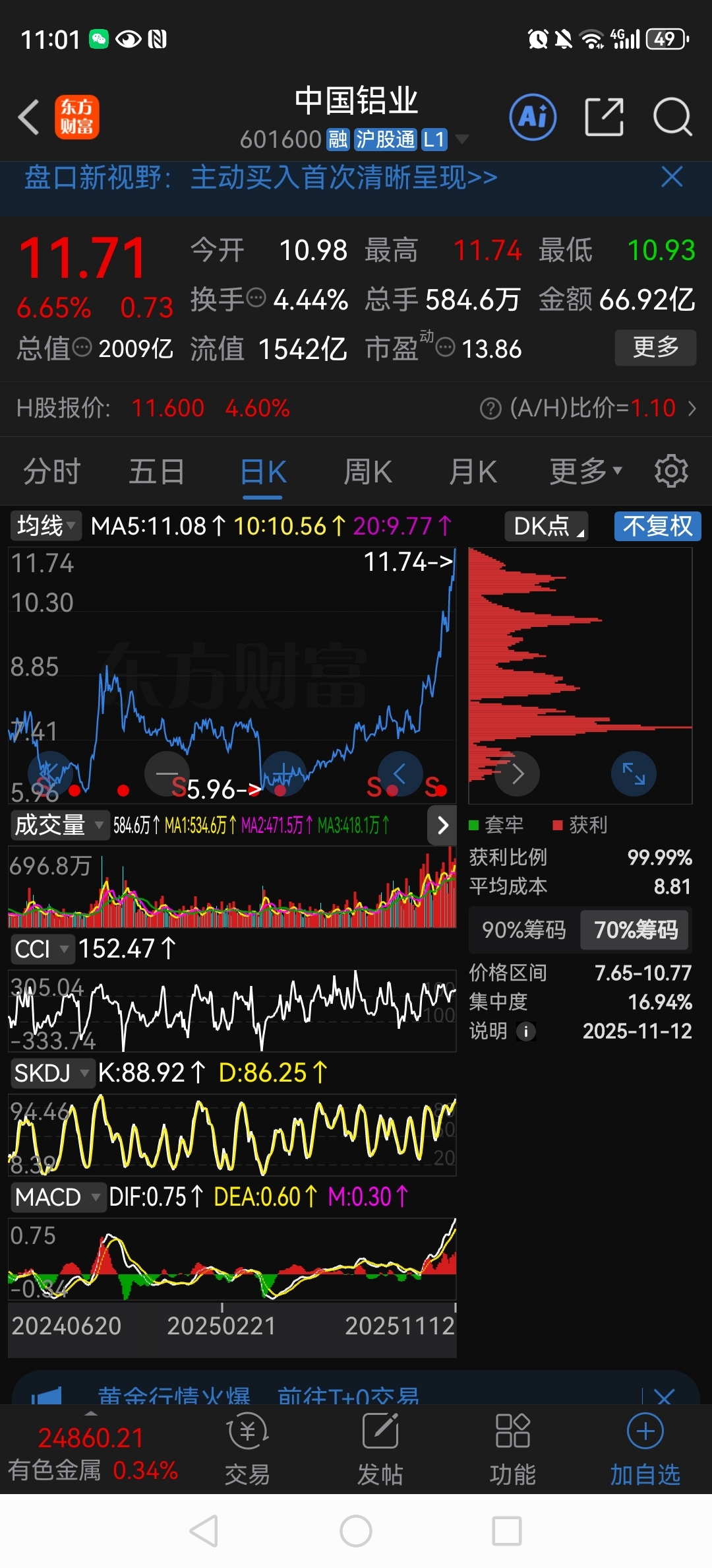 $明泰铝业(SH601677)$ 股价快要被中国铝业追上了……