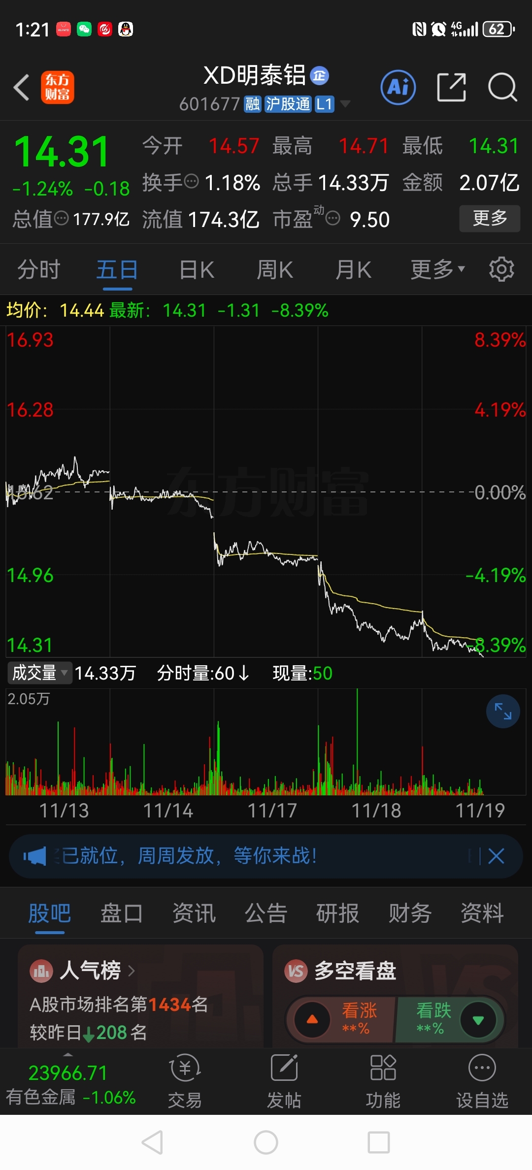 $XD明泰铝(SH601677)$ 还没见底……