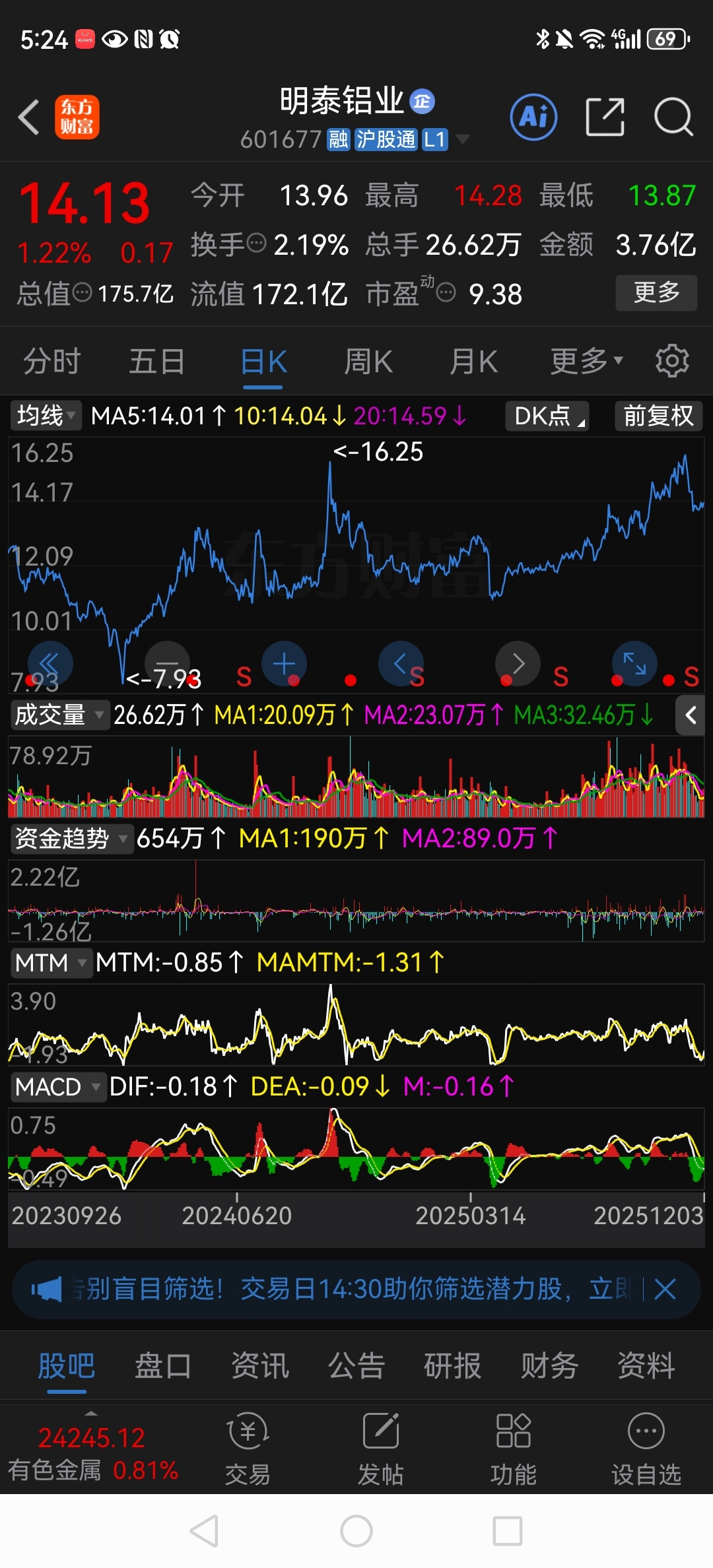 $明泰铝业(SH601677)$ 曾经明泰铝业和云铝股份并驾齐驱,时隔一年多,已经相去甚远……