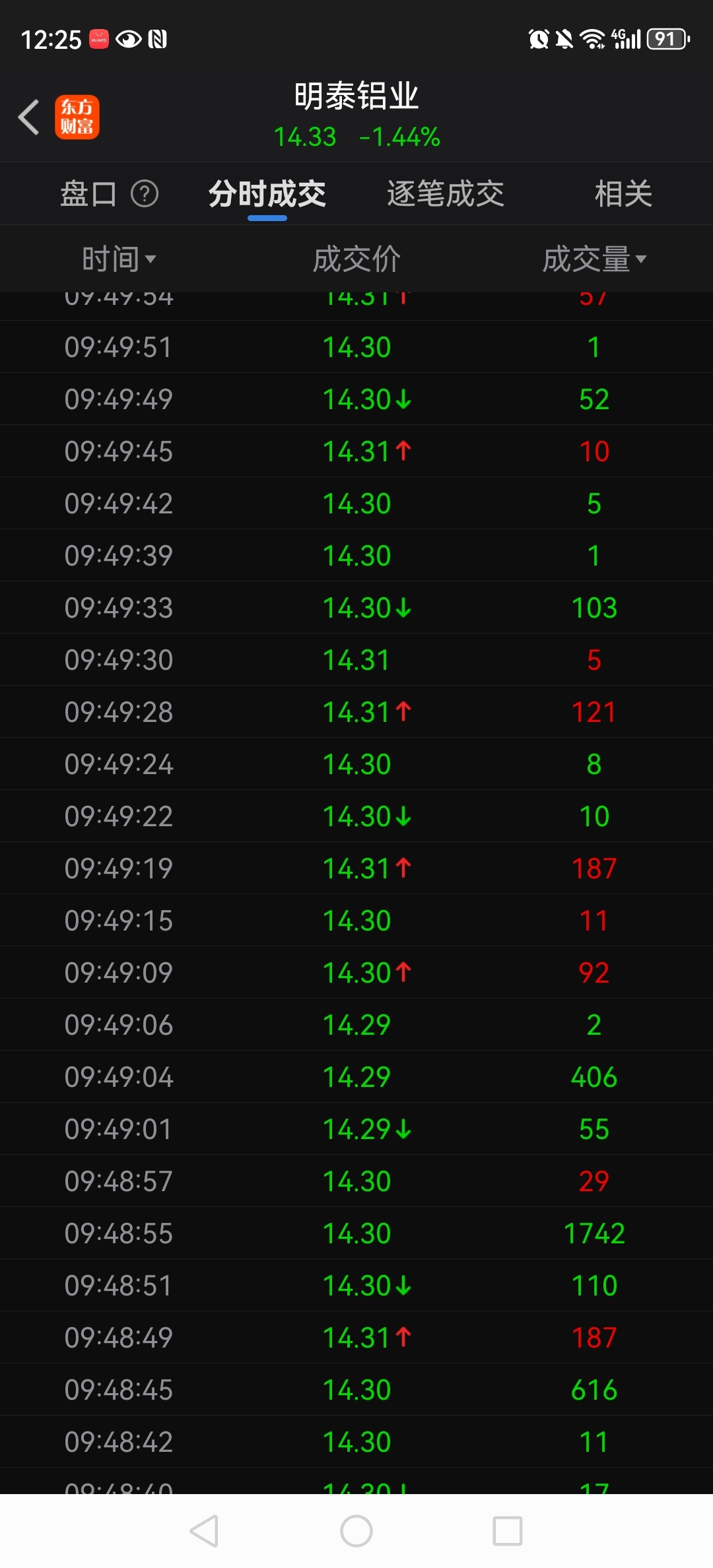 $明泰铝业(SH601677)$ 2025年12月8日早盘,上千手的成交单尽是在买一到买五,由卖方(空头)向下砸而成交……
