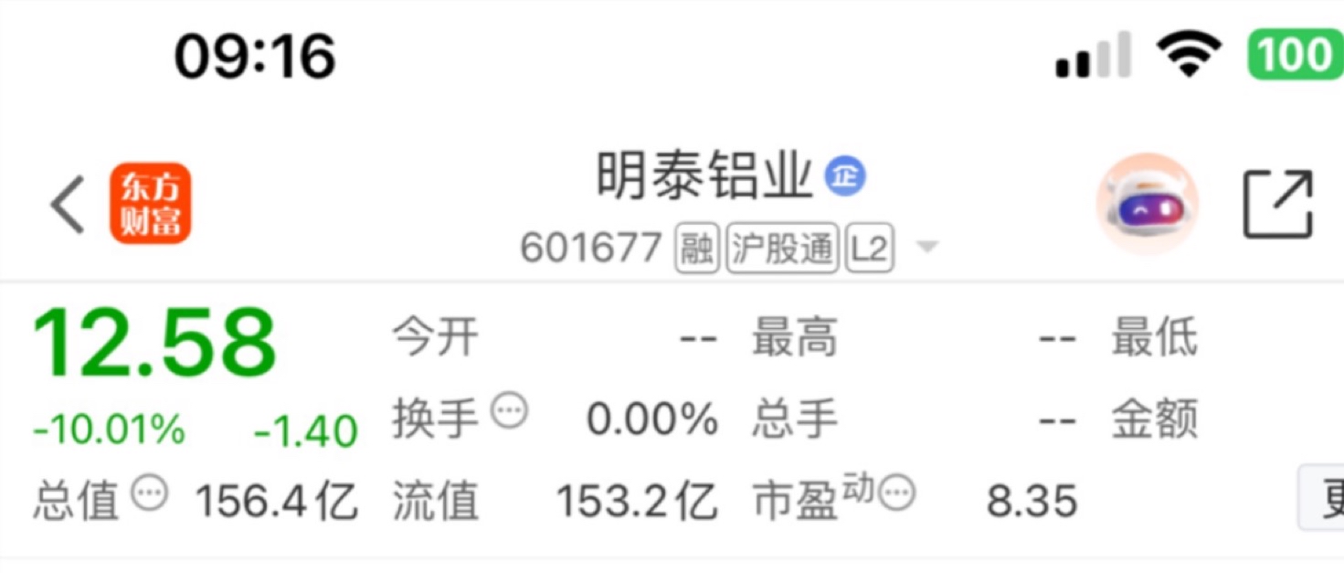 $明泰铝业(SH601677)$ 能卖就卖吧,早上已经打过样了,跌停,后面肯定会有跌停的