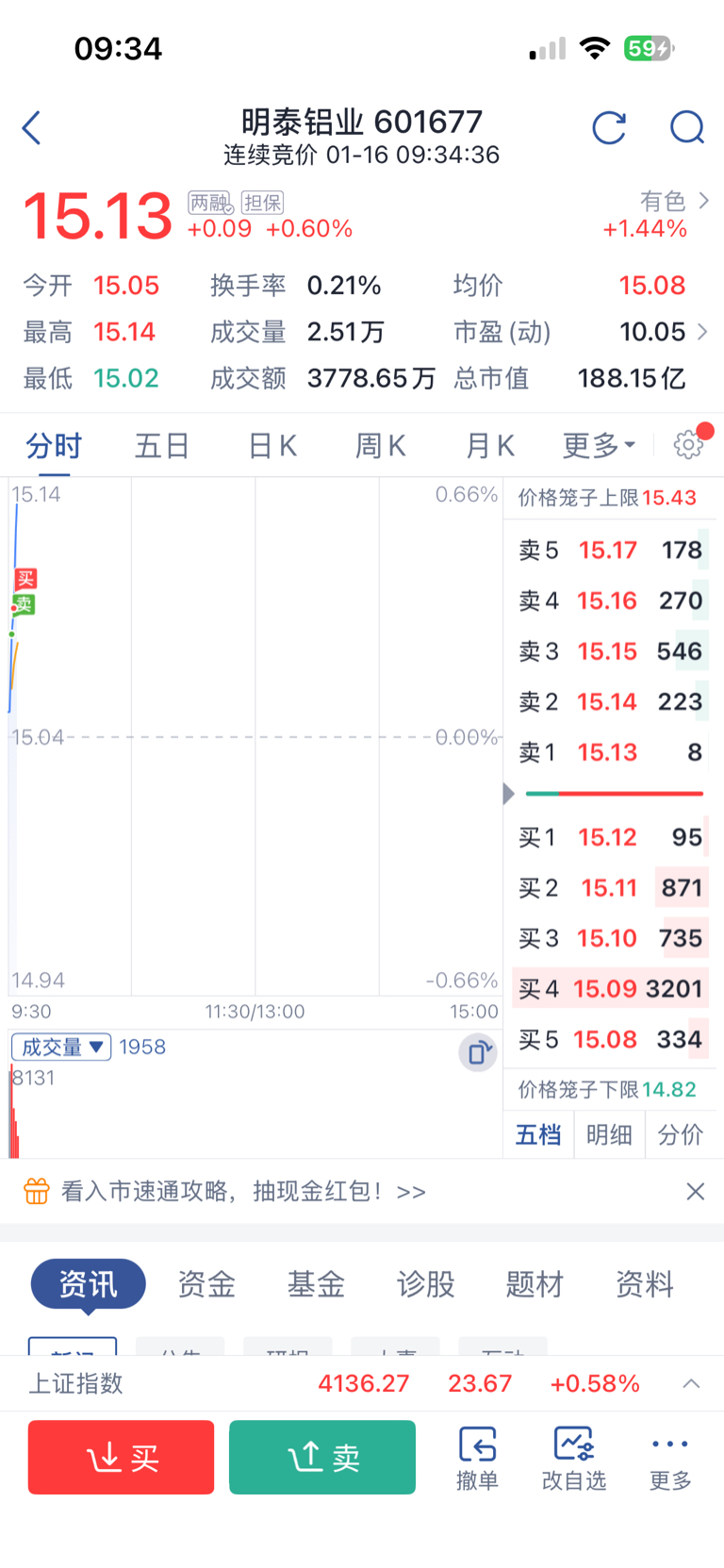 $明泰铝业(SH601677)$ 我一早卖了又买回来干嘛