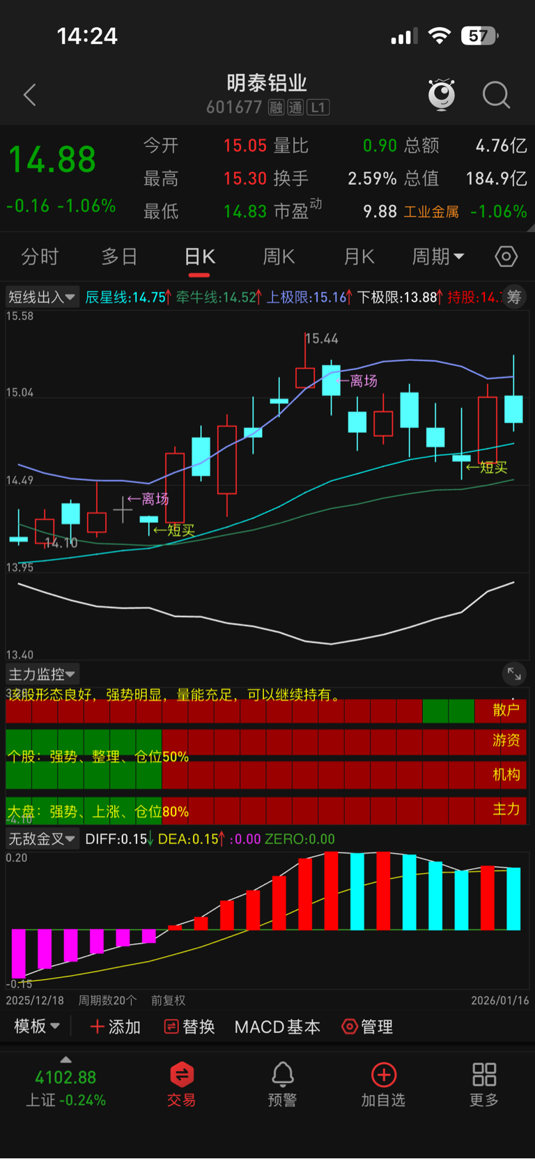 $明泰铝业(SH601677)$ 大家别惊慌,周五情绪不行,耐心持有吧