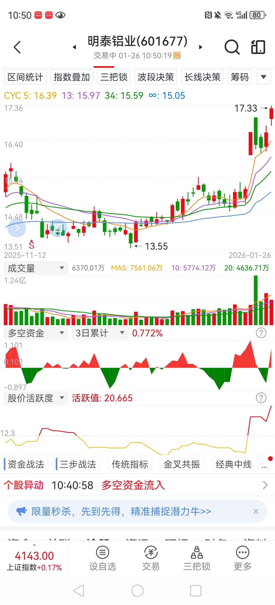 $明泰铝业(SH601677)$ 17横盘让不坚定持股|的跑路……