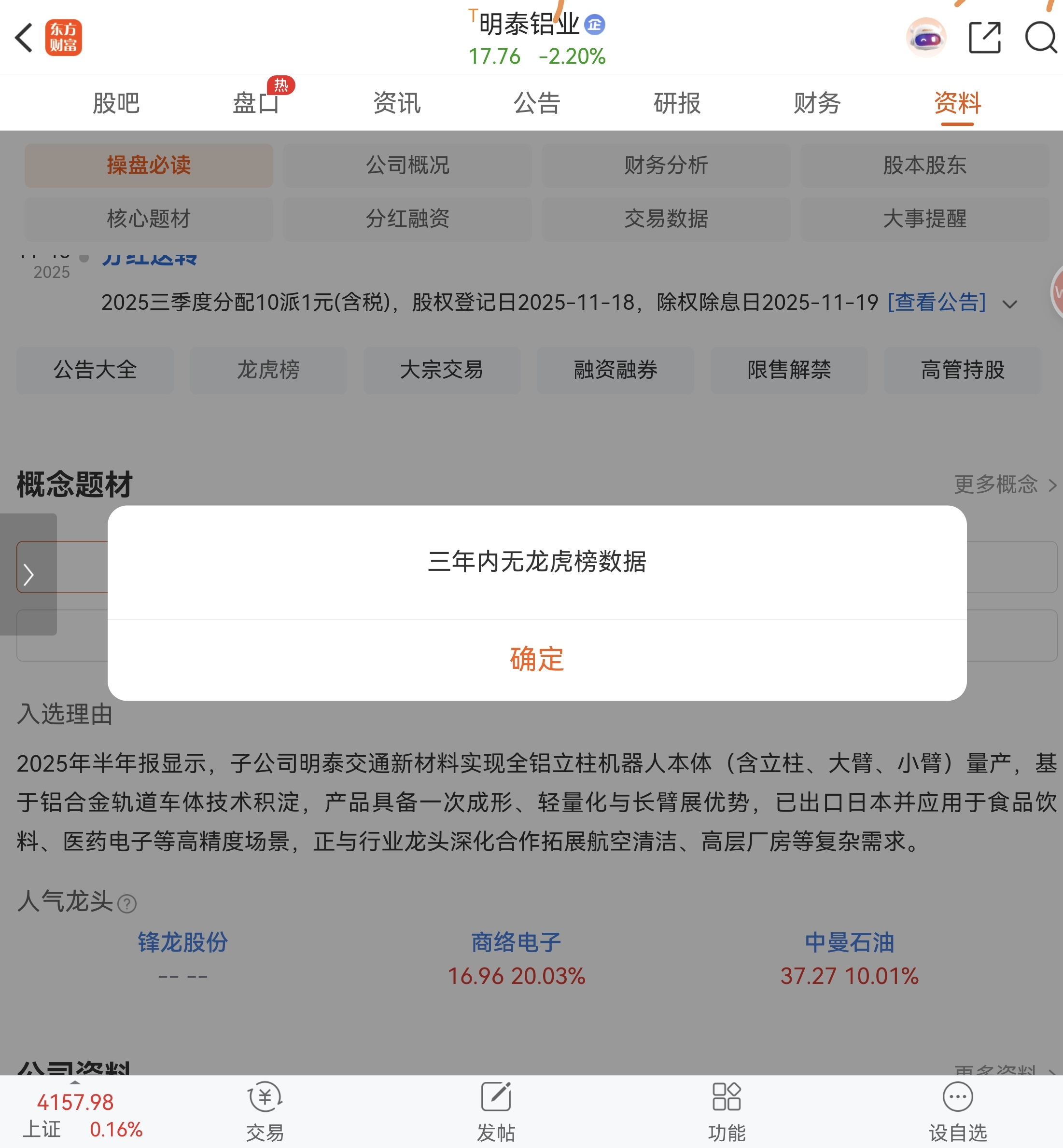 $明泰铝业(SH601677)$  三年没有龙虎榜,就能说明问题。