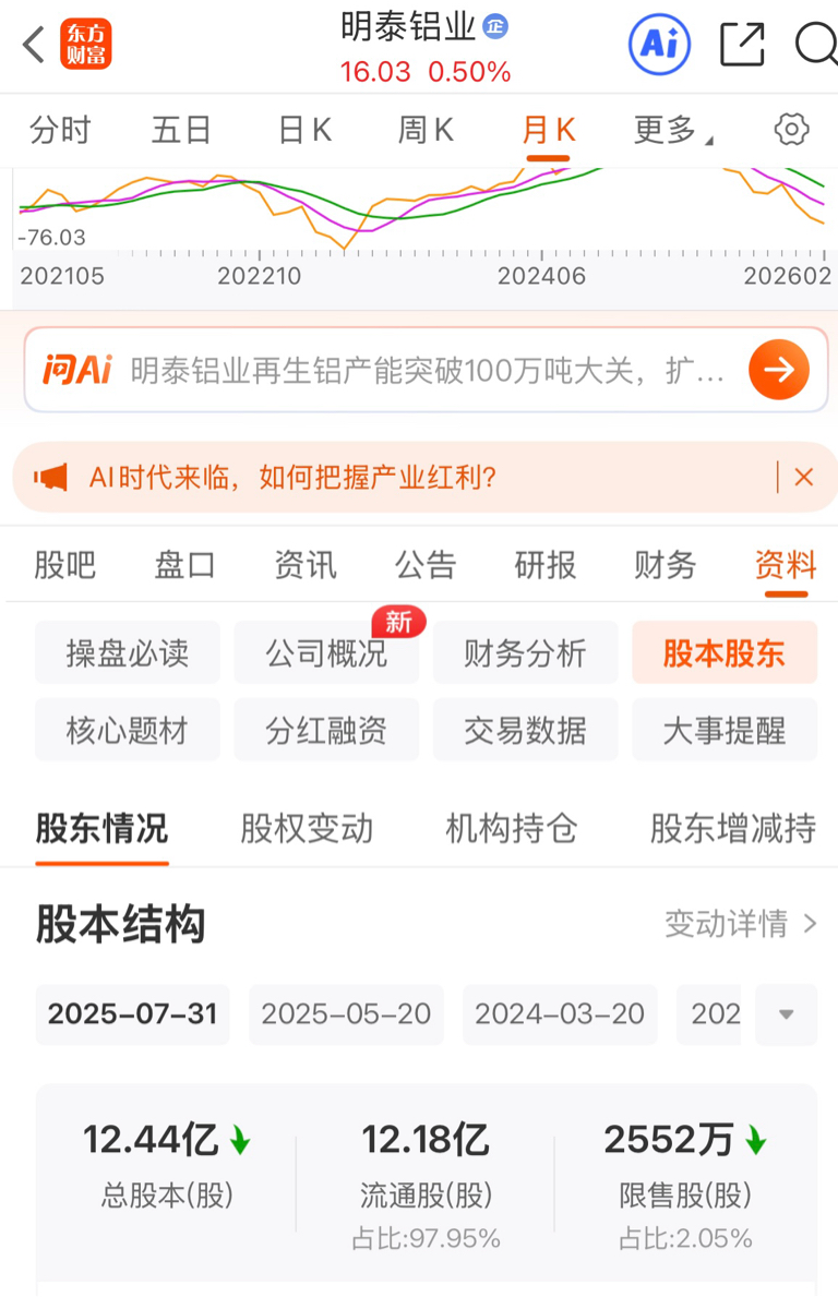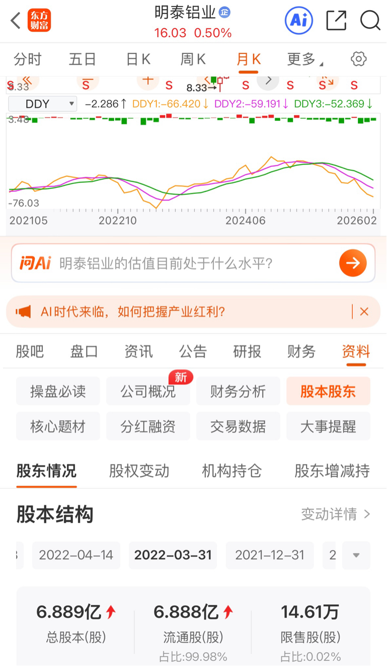 $明泰铝业(SH601677)$ 我只是对明泰的行为表示不认同,作为投资者,我只出自己的判断,有金融专业人士可以讨论一下为什么股本翻倍了,价格却屡创优跌,不是高科技吗,为什么要考定增一倍股本,我不懂这些我只是对一切持怀疑态度,有懂行的大佬来给解惑一下吧