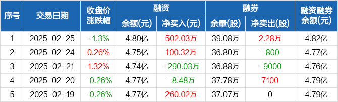 滨化股份:融资净买入502.03万元,融资余额4.8亿元(02-25)