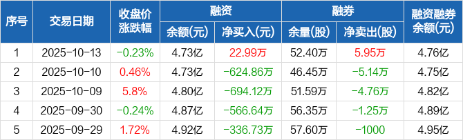滨化股份:融资净买入22.99万元,融资余额4.73亿元(10-13)