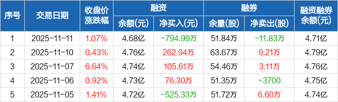 滨化股份:融资净偿还794.99万元,融资余额4.68亿元(11-11)