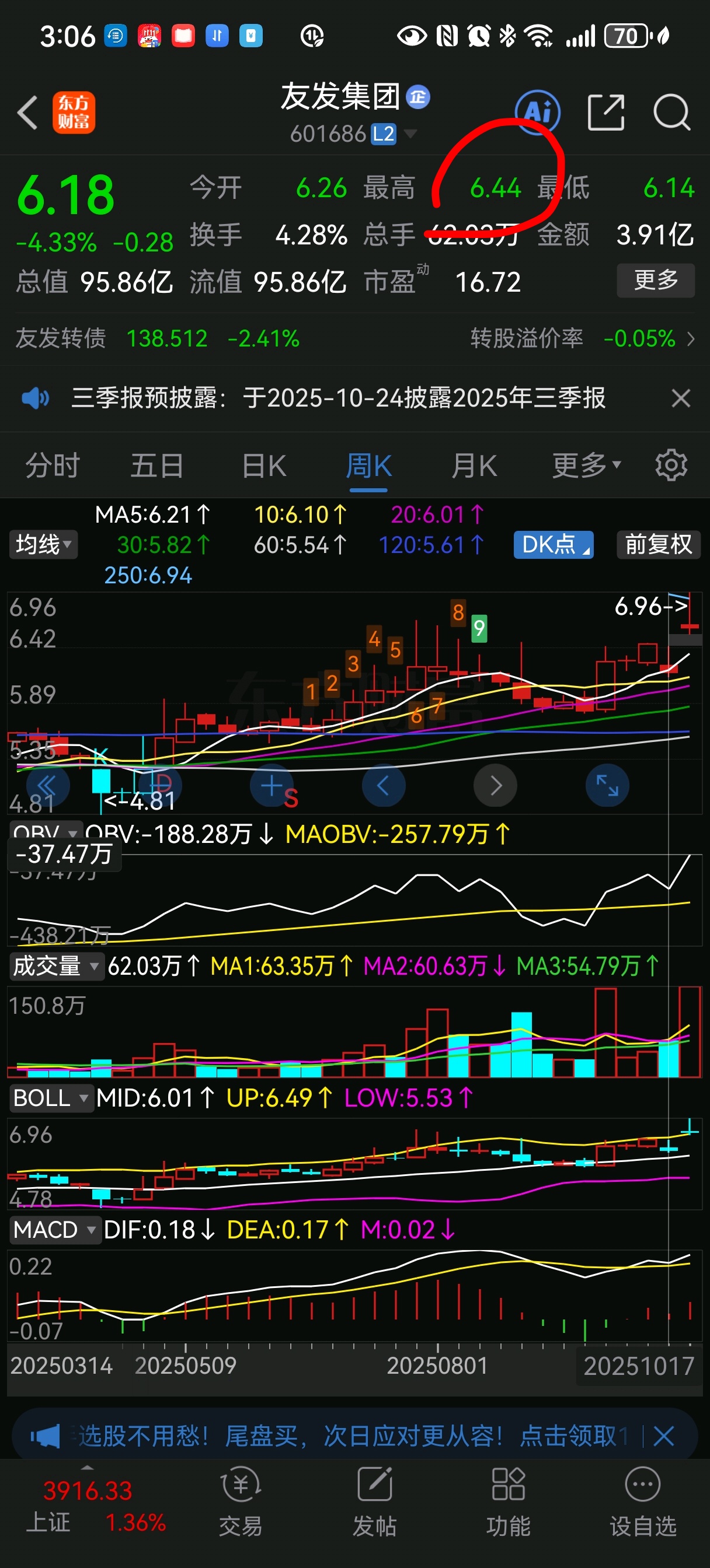 周线跳空缺口出大牛!!!6.44到6.55!112亿现金,98亿市值!业绩大增!