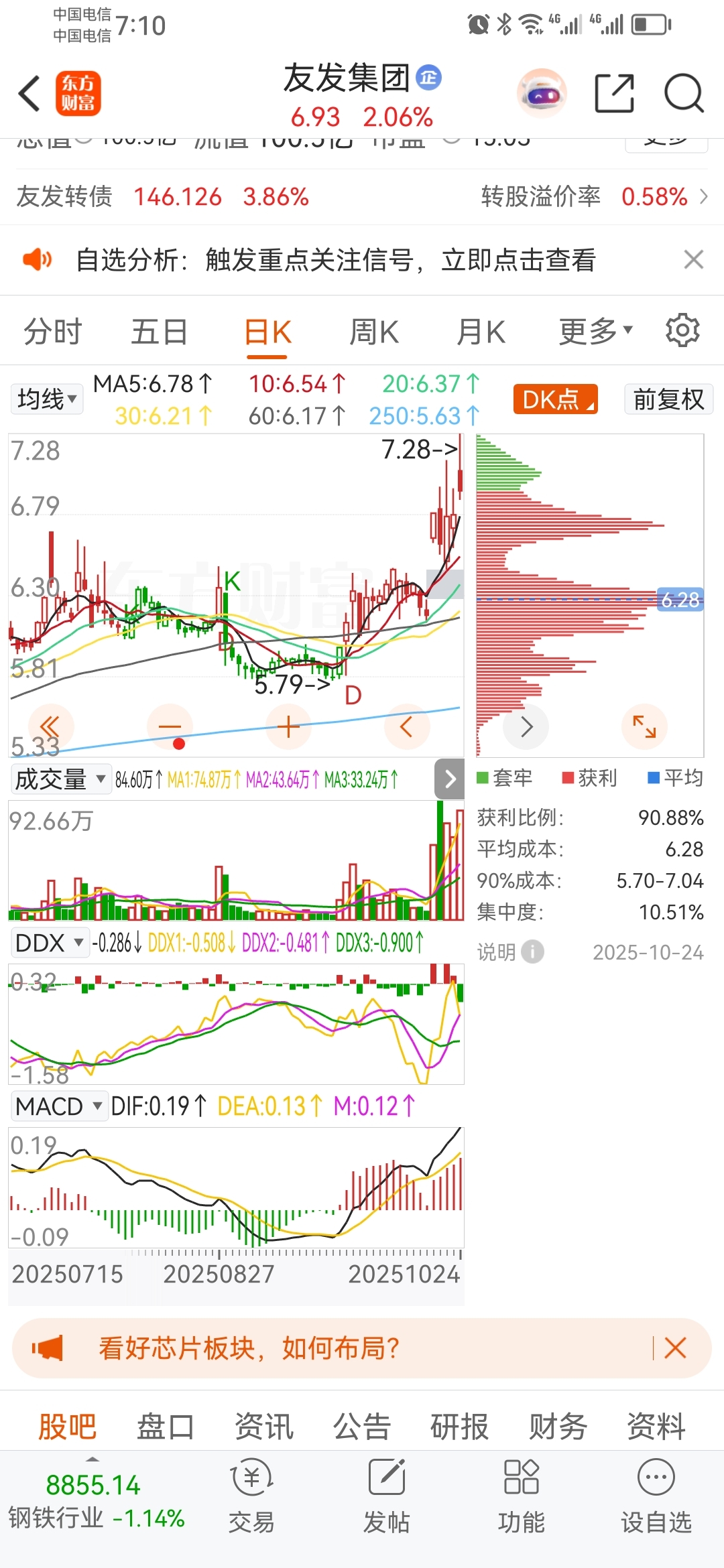 $友发集团(SH601686)$ 今天的日K线像“空中加油”,星期一见分晓