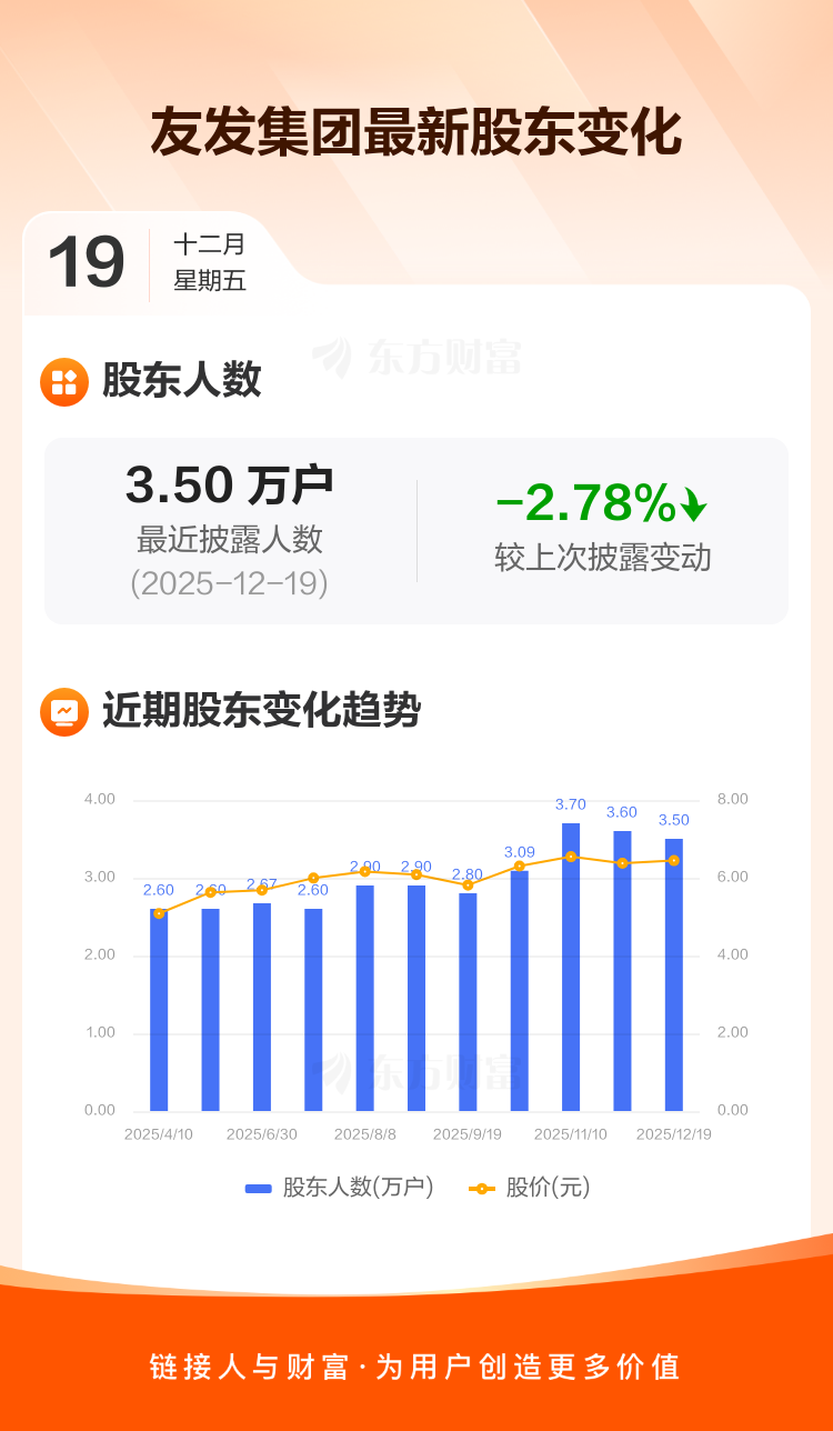友发集团:截至12月19日最新股东户数3.50万户,较上期减少2.78%