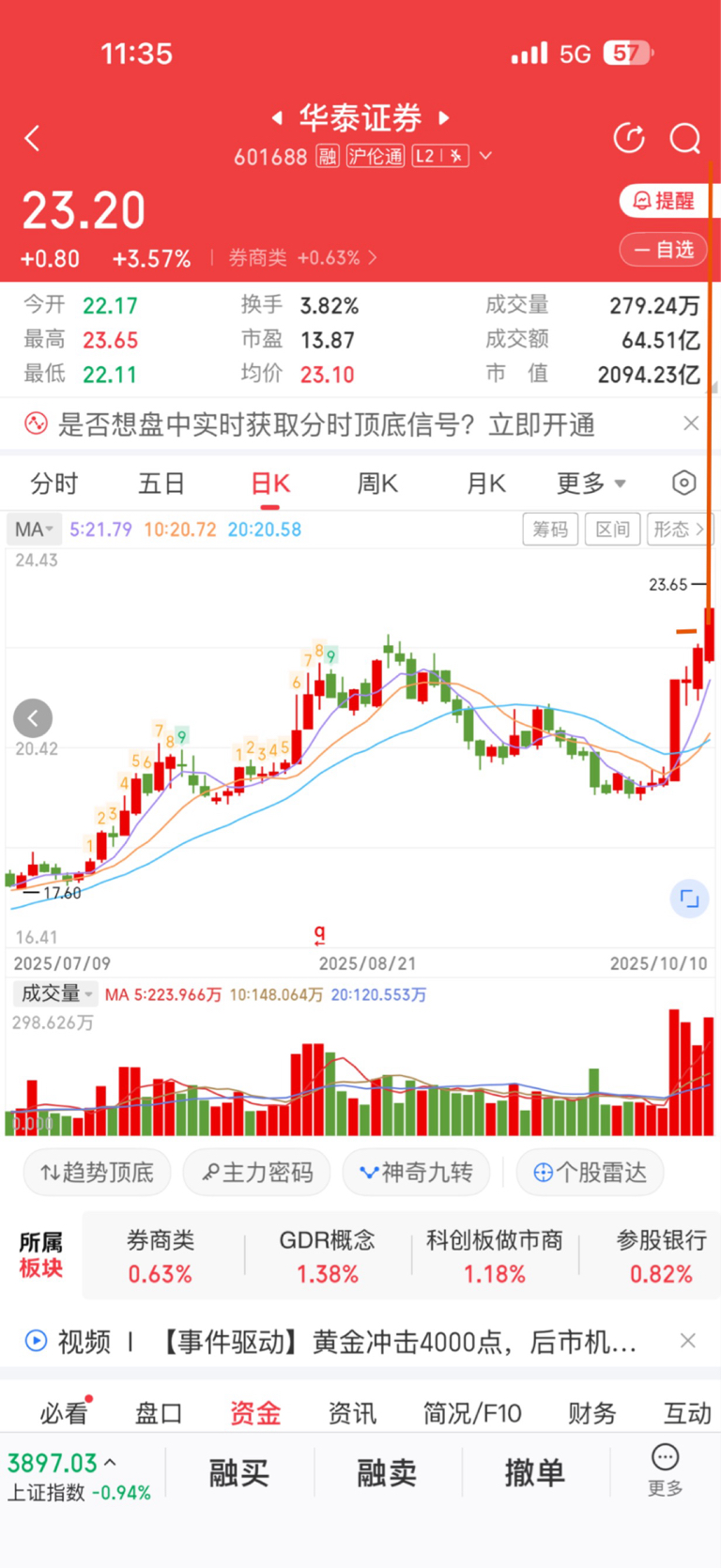 现在是十年一遇大牛市,华泰证券作为牛市旗手,我认为股价会一飞冲天,创出历史新高!