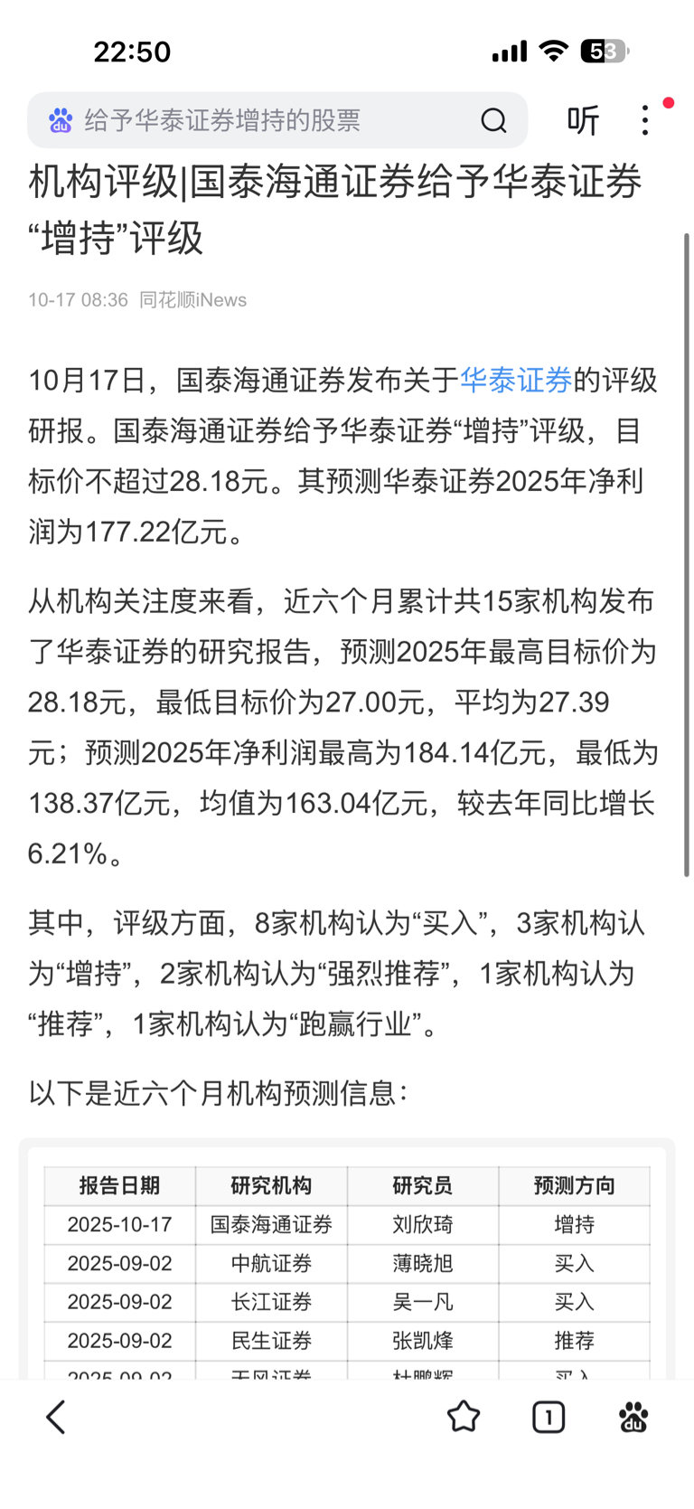 $华泰证券(SH601688)$ 今年没有多少天了,我看机构预测的准不准!当然我也希望华泰证券股价会有突破
