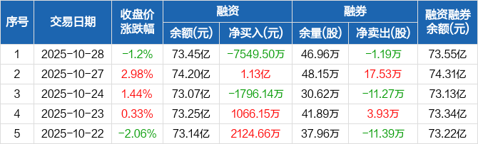 华泰证券:融资净偿还7549.5万元,融资余额73.45亿元(10-28)