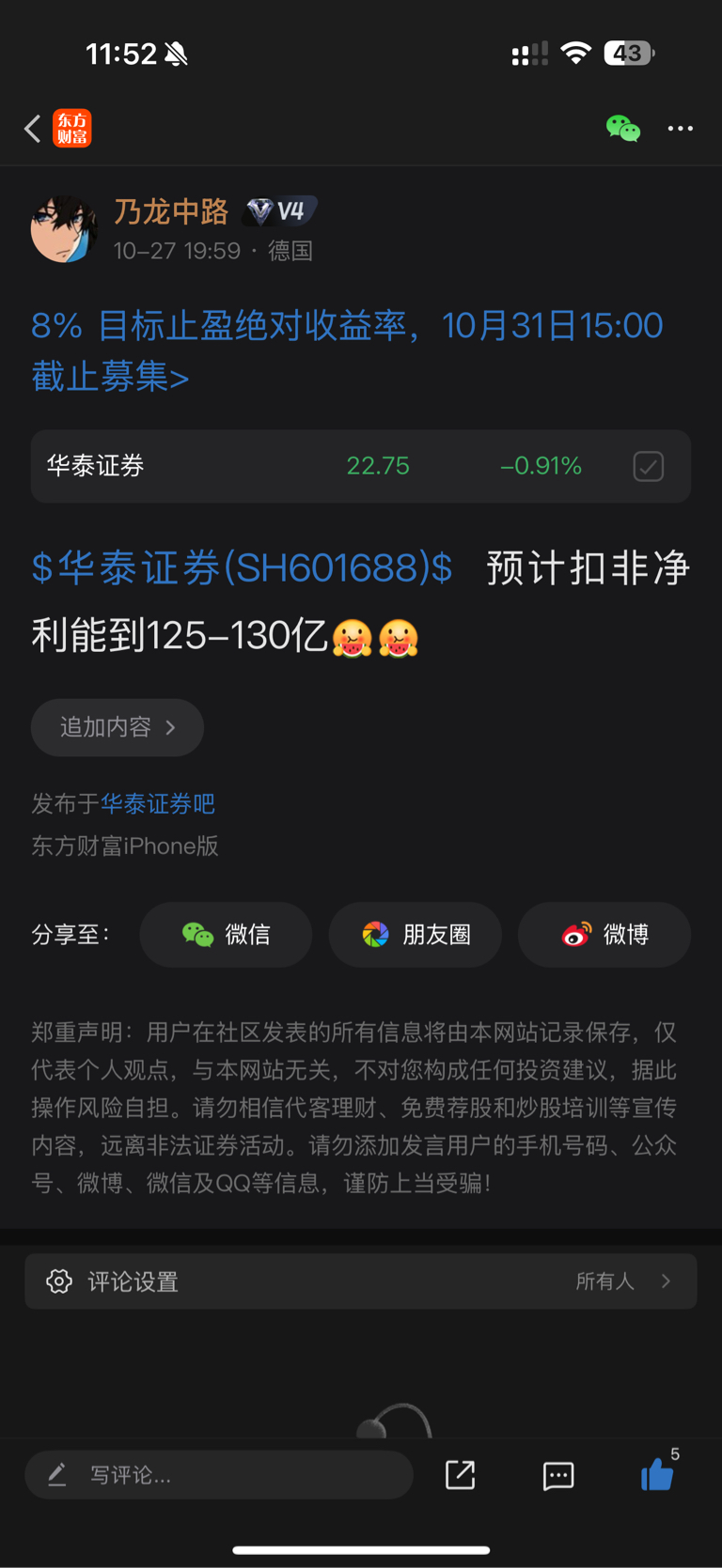 $华泰证券(SH601688)$  有大分歧是好事,看空财报的走,看多持有。