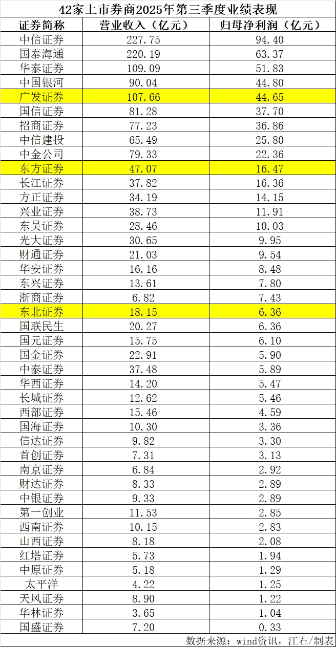 还是老三,第三季营收109亿,利润51.83亿,其实利润率第一!希望华泰证券争气