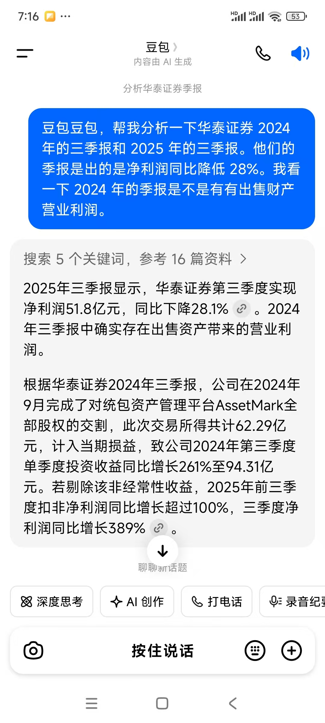 一个坑散户的深蹲!同比降低28%的秘密!利用三季报的同比降低28%的消息诱惑散户交出筹码!我用豆包来回答原因!!!实际是三季度同比增加389%!打压股票价格至极运用,坑散户啊!