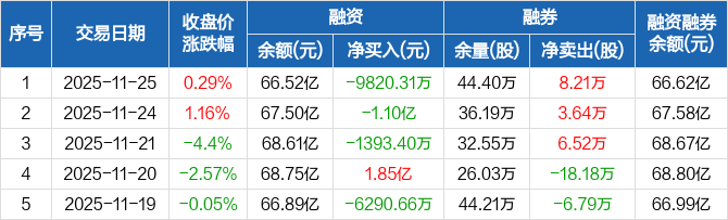 华泰证券:融资净偿还9820.31万元,两市排名第19(11-25)