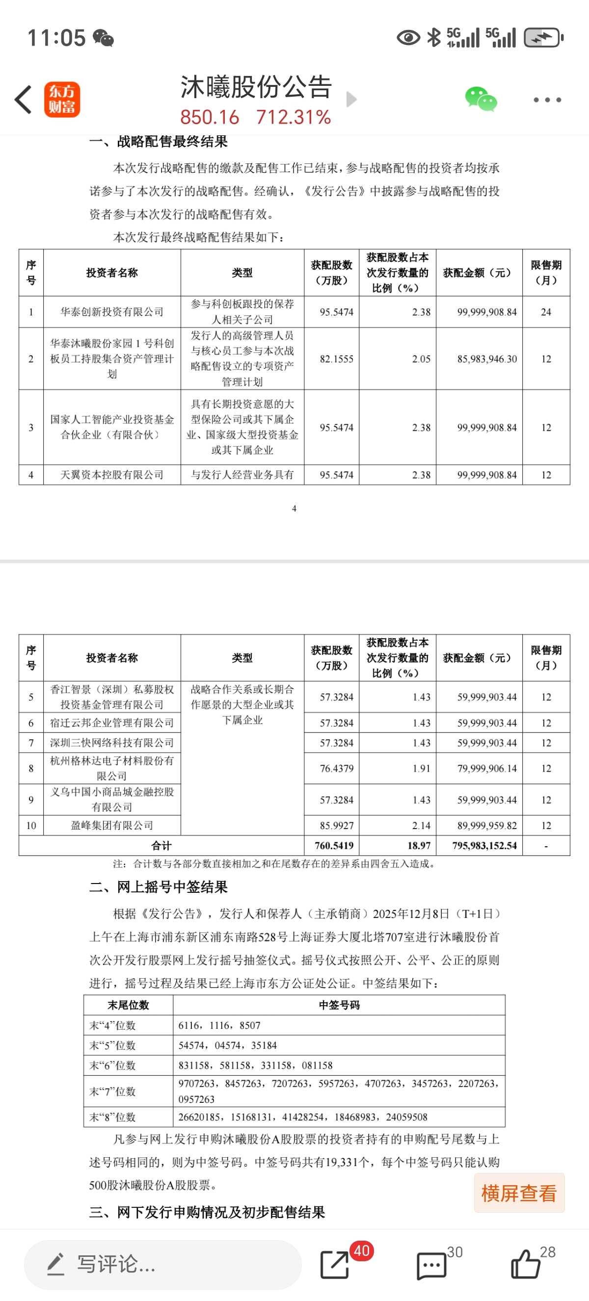 我刚电话问过华泰证券部,沐曦上市时华泰创新跟投了95万股,接近1亿元。