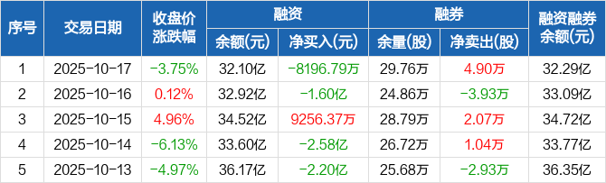 拓普集团:融资净偿还8196.79万元,融资余额32.1亿元(10-17)