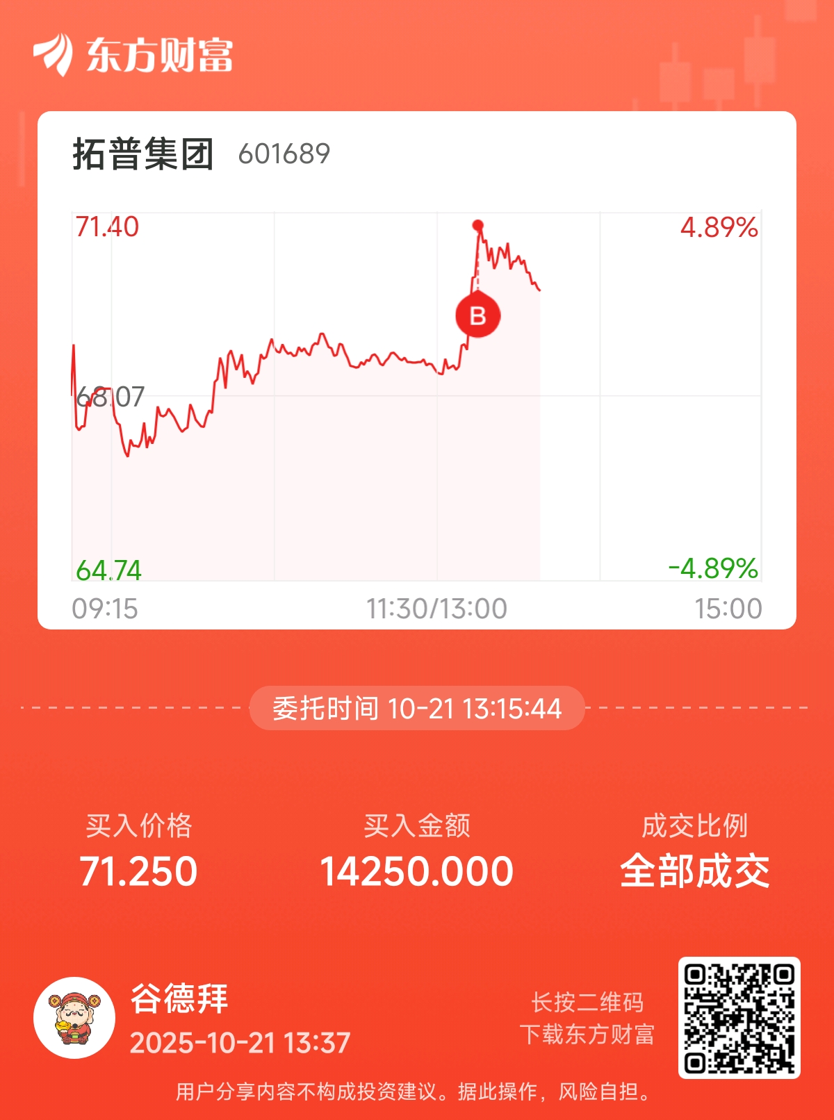 温馨提示: 1.根据《证券法》规定,禁止编造、传播虚假信息或者误导性信息,扰乱证券市场;2.用户在本社区发表的所有资料、言论等仅代表个人观点,与本网站立场无关,不对您构成任何投资建议。用户应基于自己的独立判断,自行决定证券投资并承担相应风险。《东方财富社区管理规定》