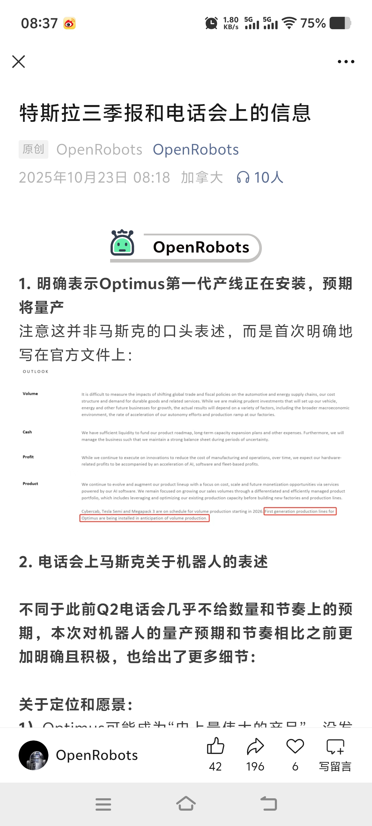 $拓普集团(SH601689)$ 特斯拉机器人最详细、权威的解读!