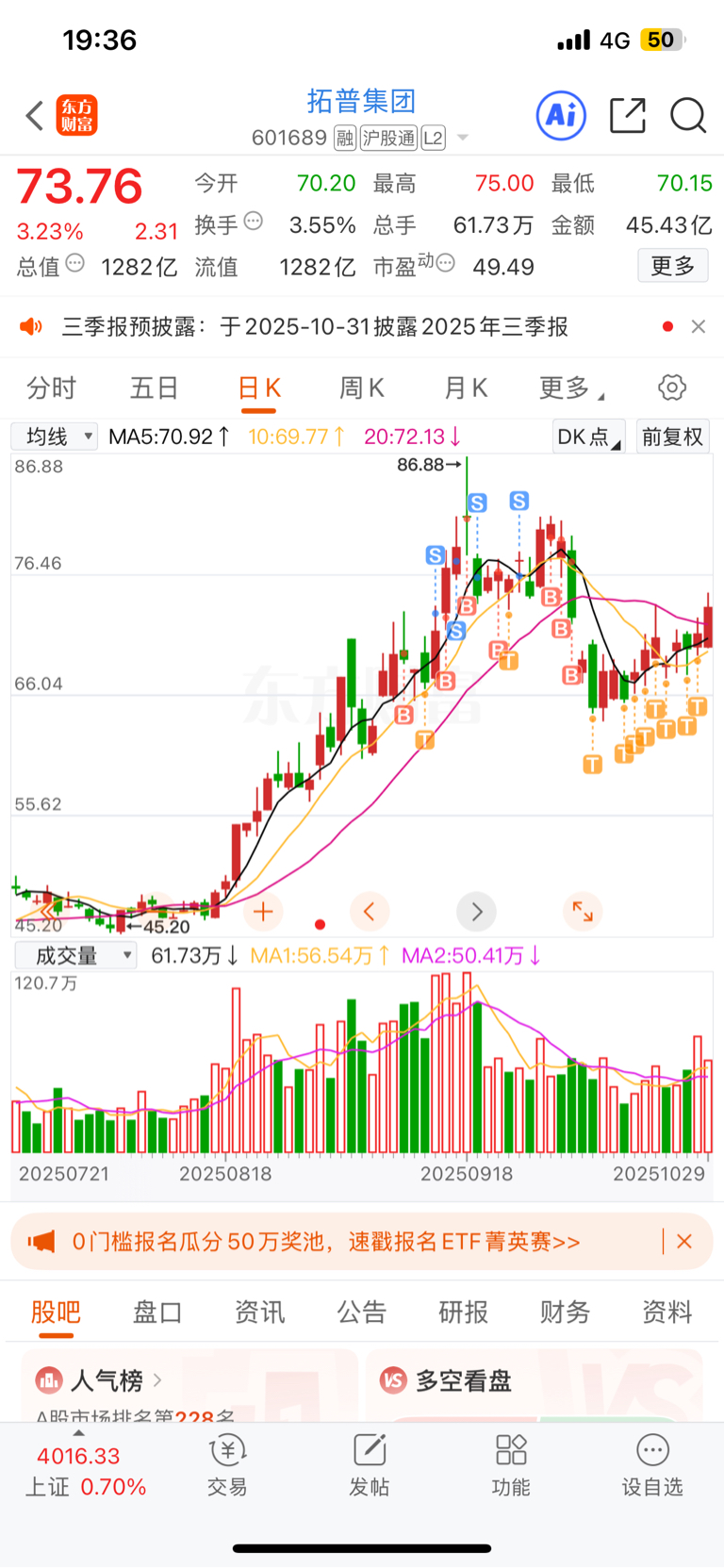 8连T,明天看样子又要T了,以为今天要飞的。明天继续T。