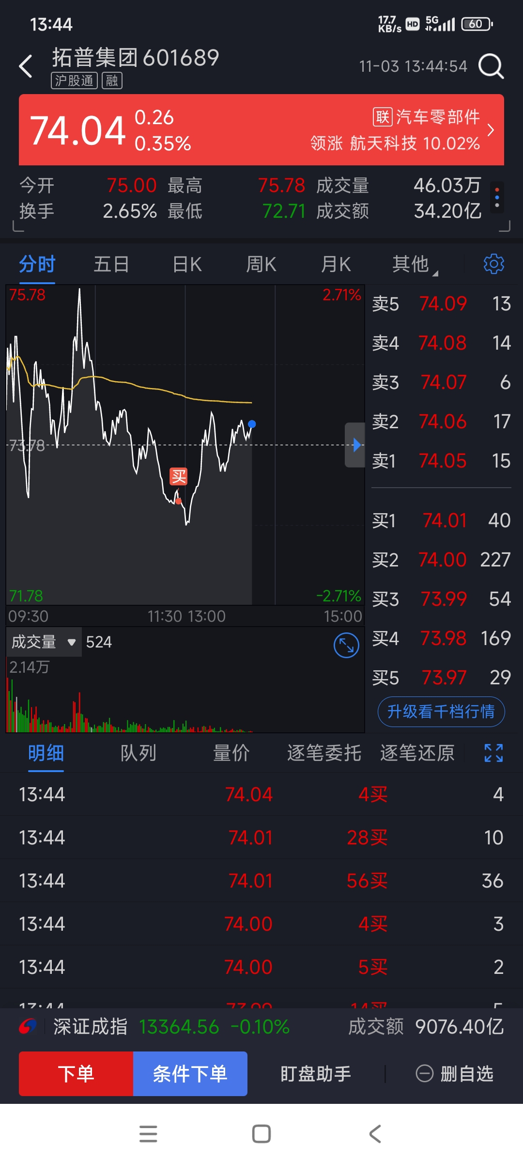 $拓普集团(SH601689)$ 开始建仓,买了10手