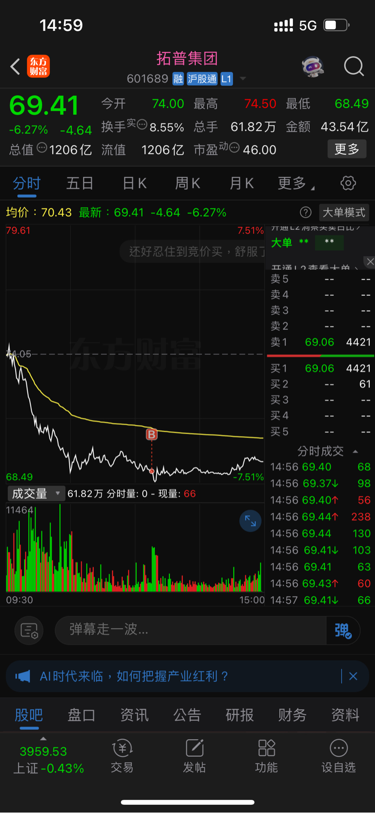 $拓普集团(SH601689)$ 水下近7个点接了三分之一仓,明天看
