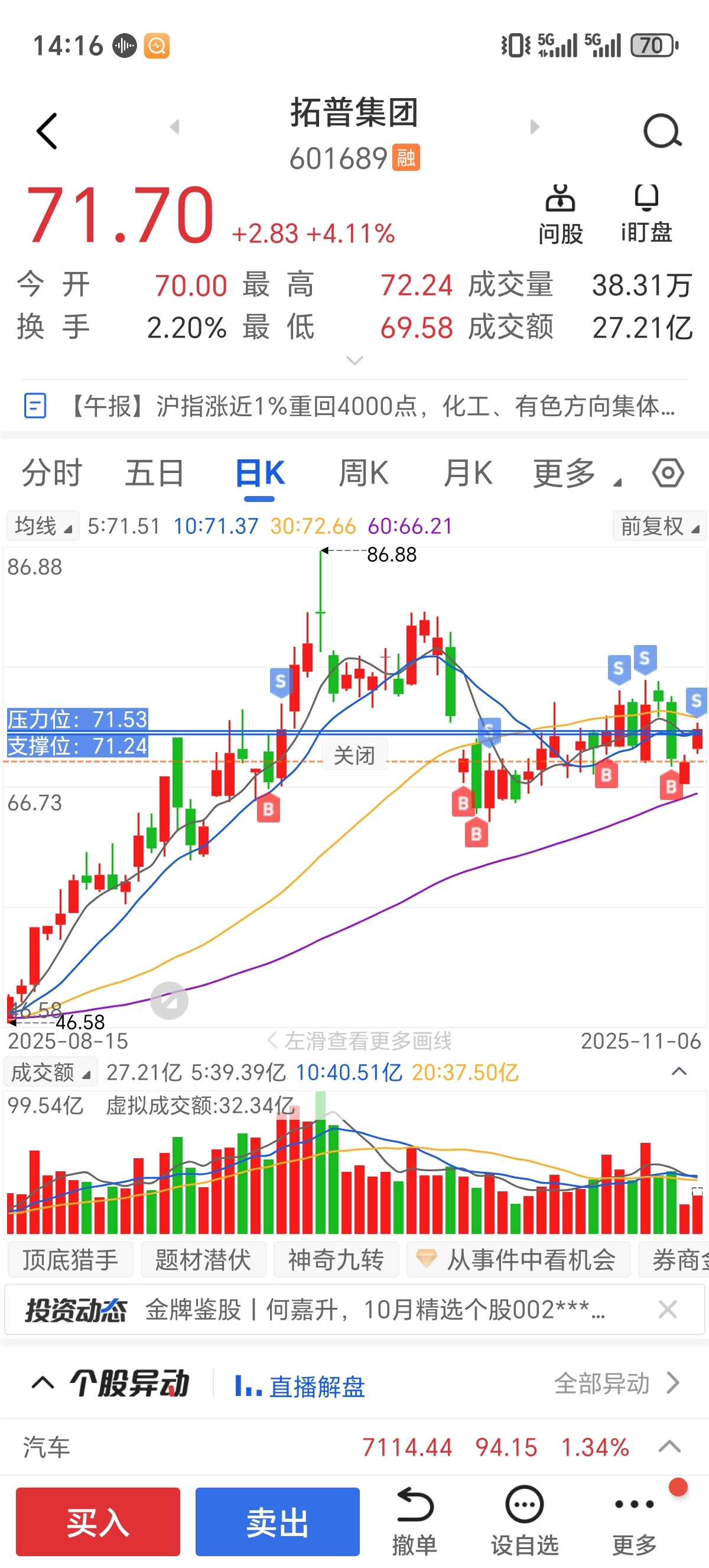 $拓普集团(SH601689)$ 虽然赚的不多,至少不被套