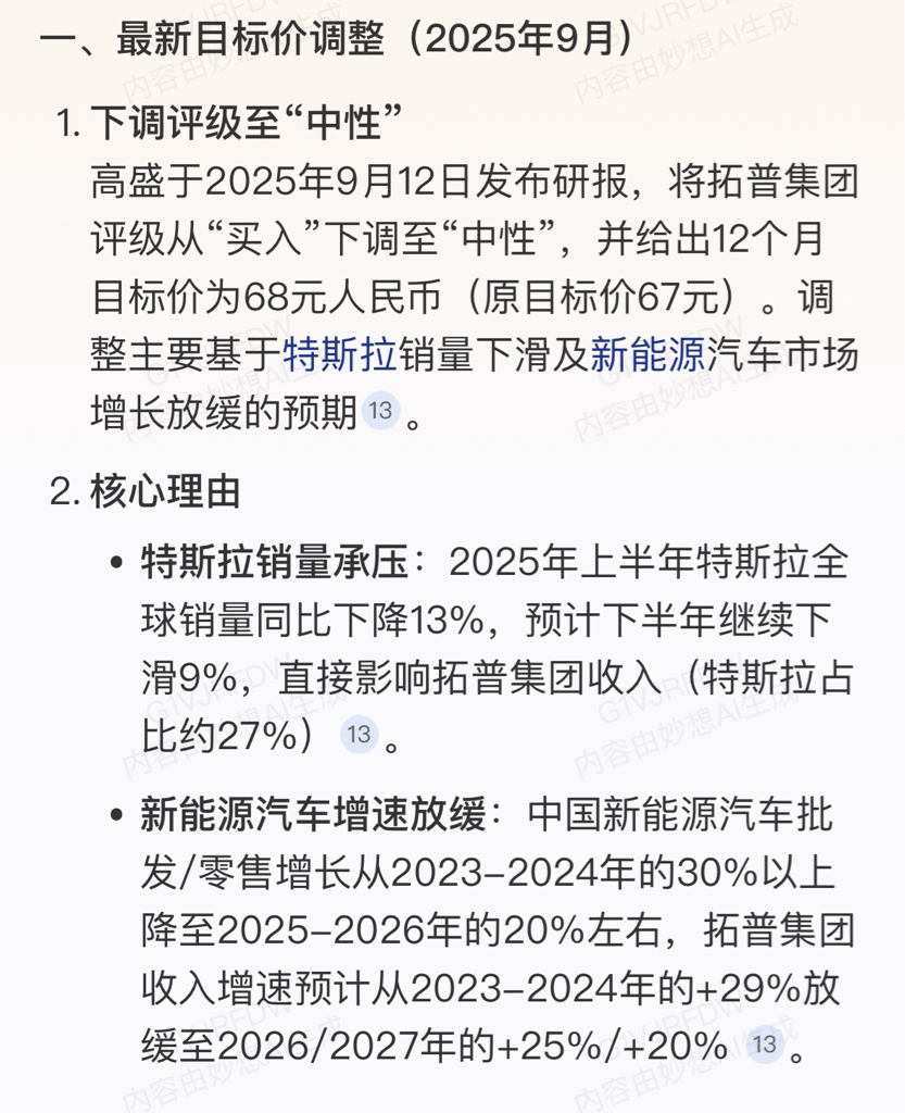 拓普集团已经跌到高盛给的目标价了,三花智控还有得跌