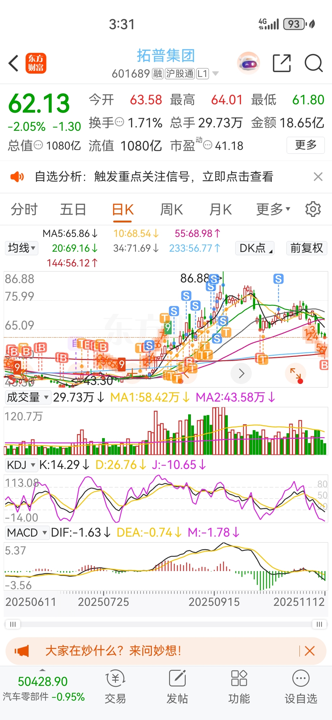 $拓普集团(SH601689)$ 我回来打个野,被套也无所谓!