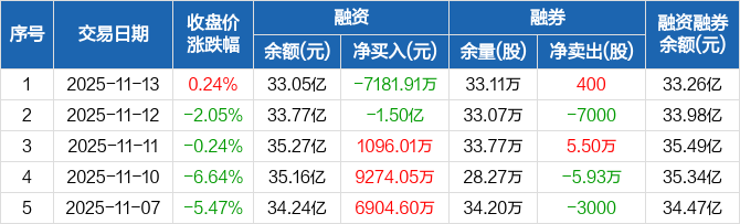 拓普集团:融资净偿还7181.91万元,融资余额33.05亿元(11-13)