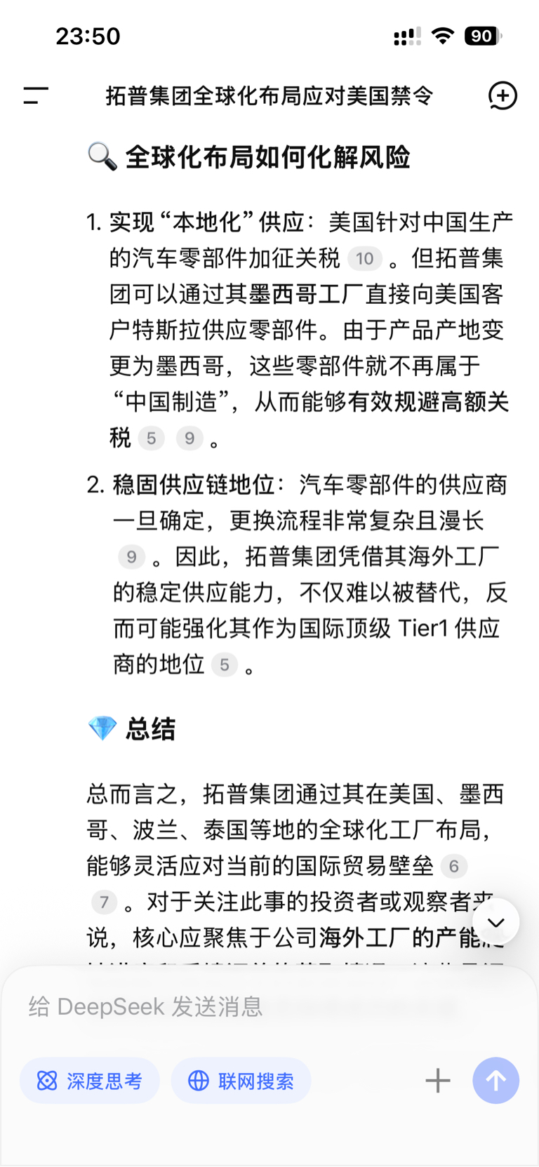 $拓普集团(SH601689)$ 突然懂了为什么拓普说墨西哥厂利用率大幅提升。原来是提前知道了美国要禁用国内汽车零部件。进一步巩固了超级供应商地位。四季报应该要超级爆炸了