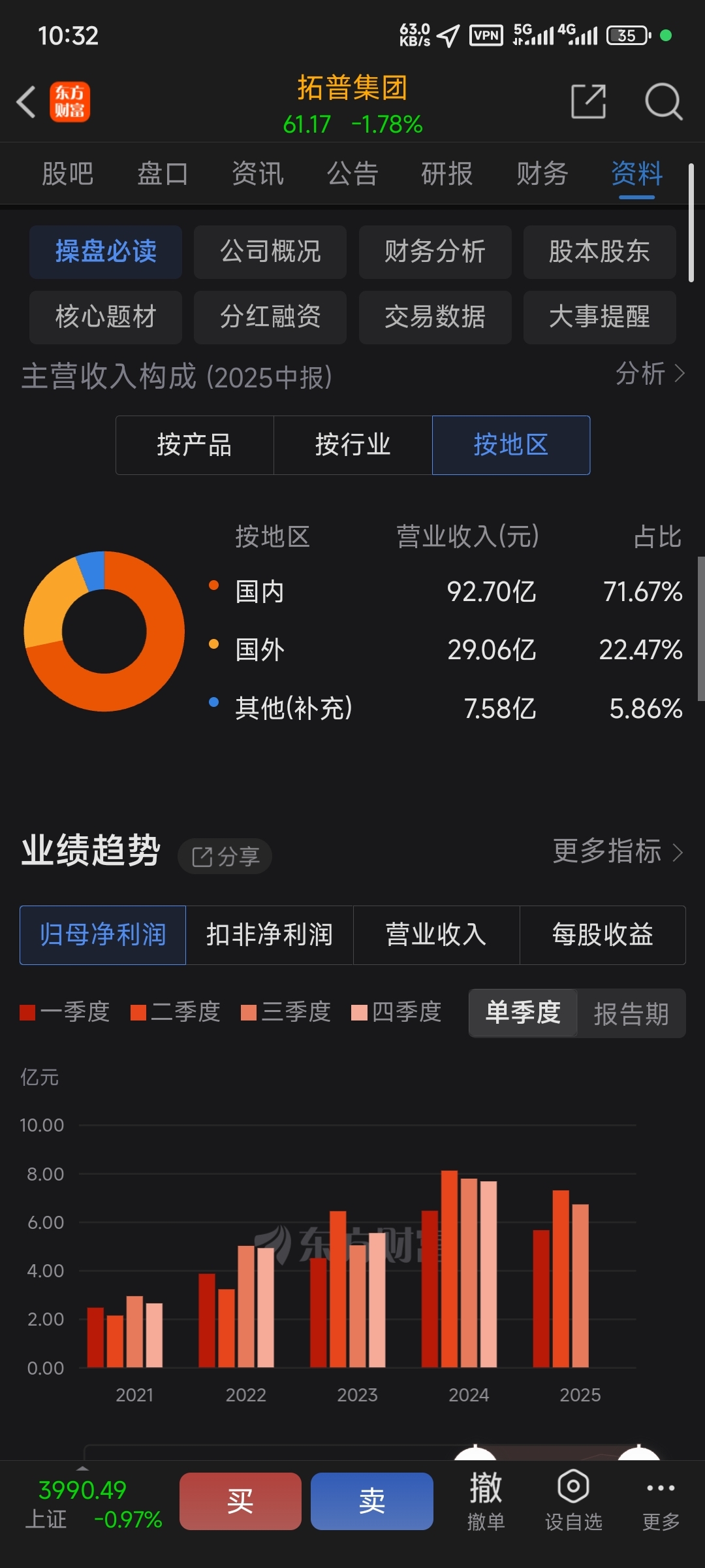 海外收入占比拓普:22%三花:44%均胜:74%好像三花和均胜更伤一点