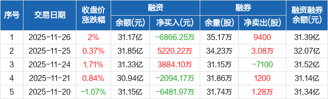 拓普集团:融资净偿还6866.25万元,融资余额31.17亿元(11-26)