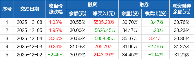 拓普集团:融资净买入5505.2万元,融资余额30.55亿元(12-08)