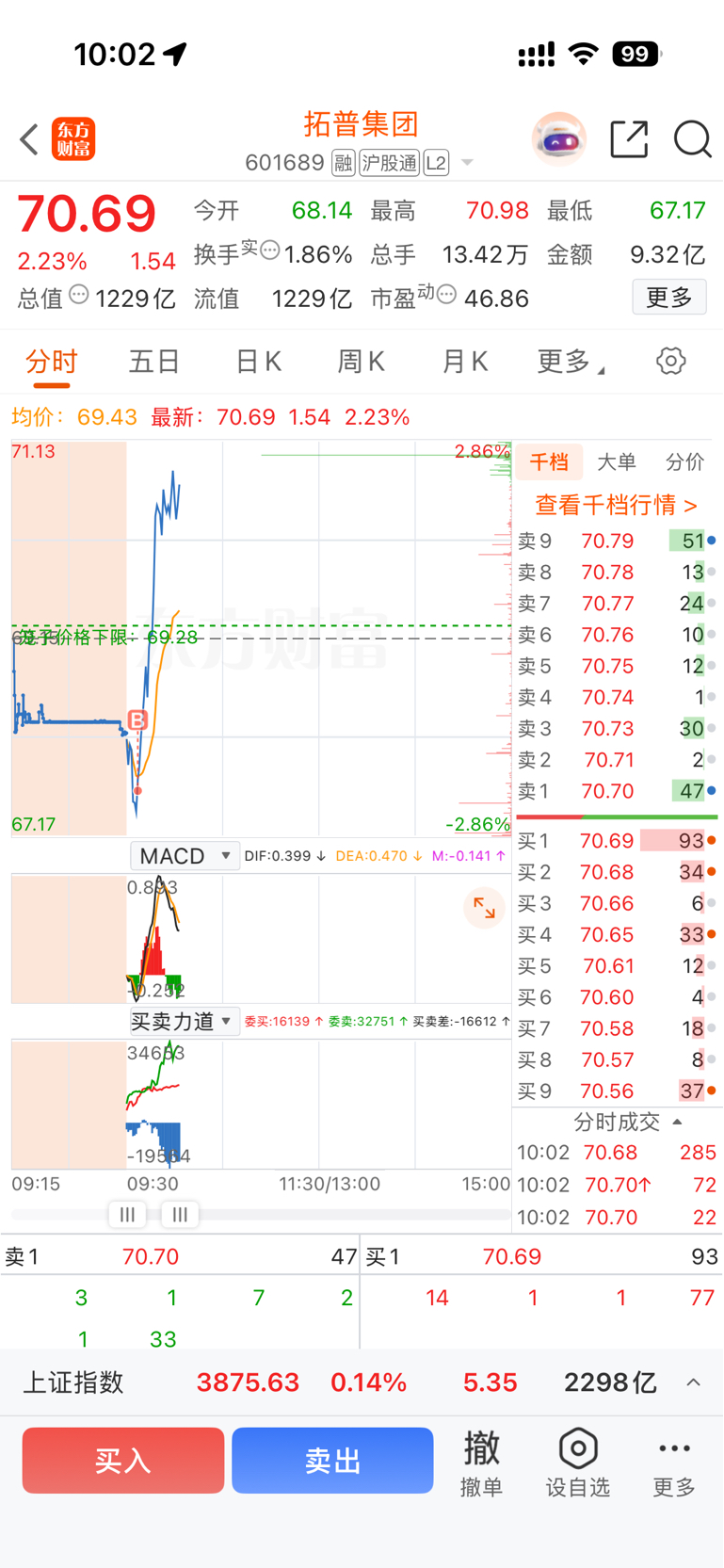 $拓普集团(SH601689)$ 挂70.5的单子卖掉了
