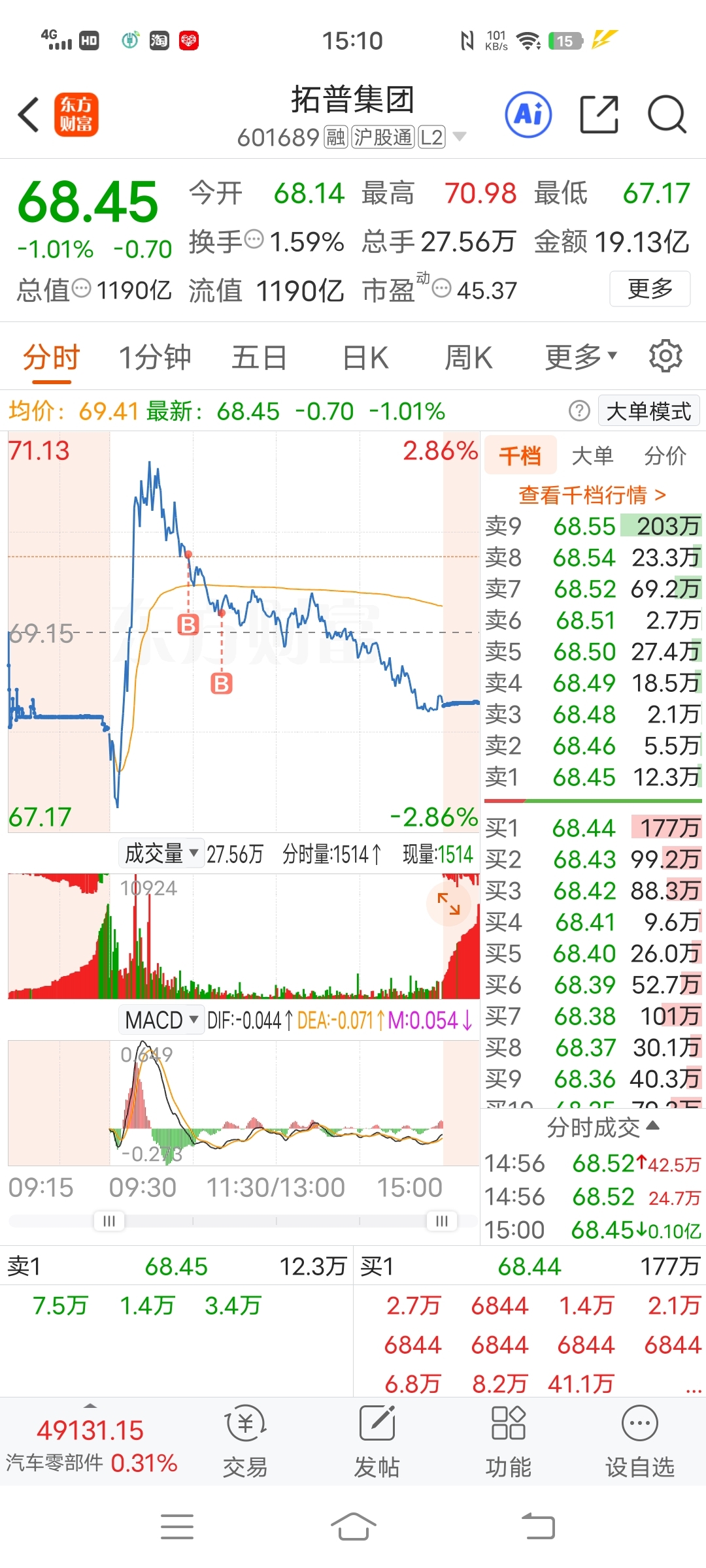 专家推的票,昨天尾盘推的TCL今天亏两天点卖了,他早盘又推了拓普集团我要进去了又