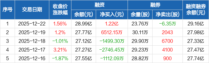 拓普集团:融资净买入1.22亿元,融资余额28.99亿元(12-22)