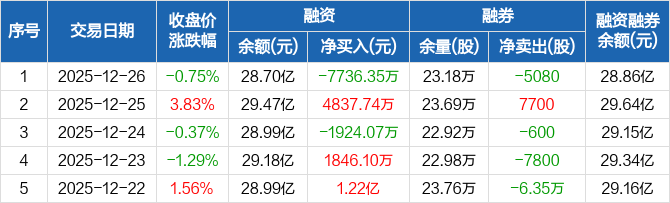拓普集团:融资净偿还7736.35万元,融资余额28.7亿元(12-26)