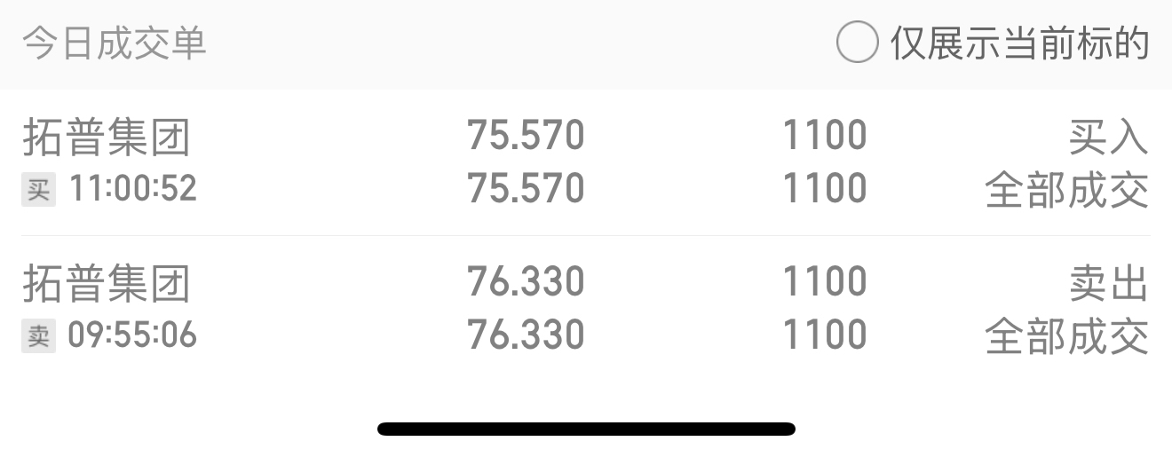 $拓普集团(SH601689)$ 我今天的收益已经到手了,一个点都不到,你随意吧!每天满仓做 T