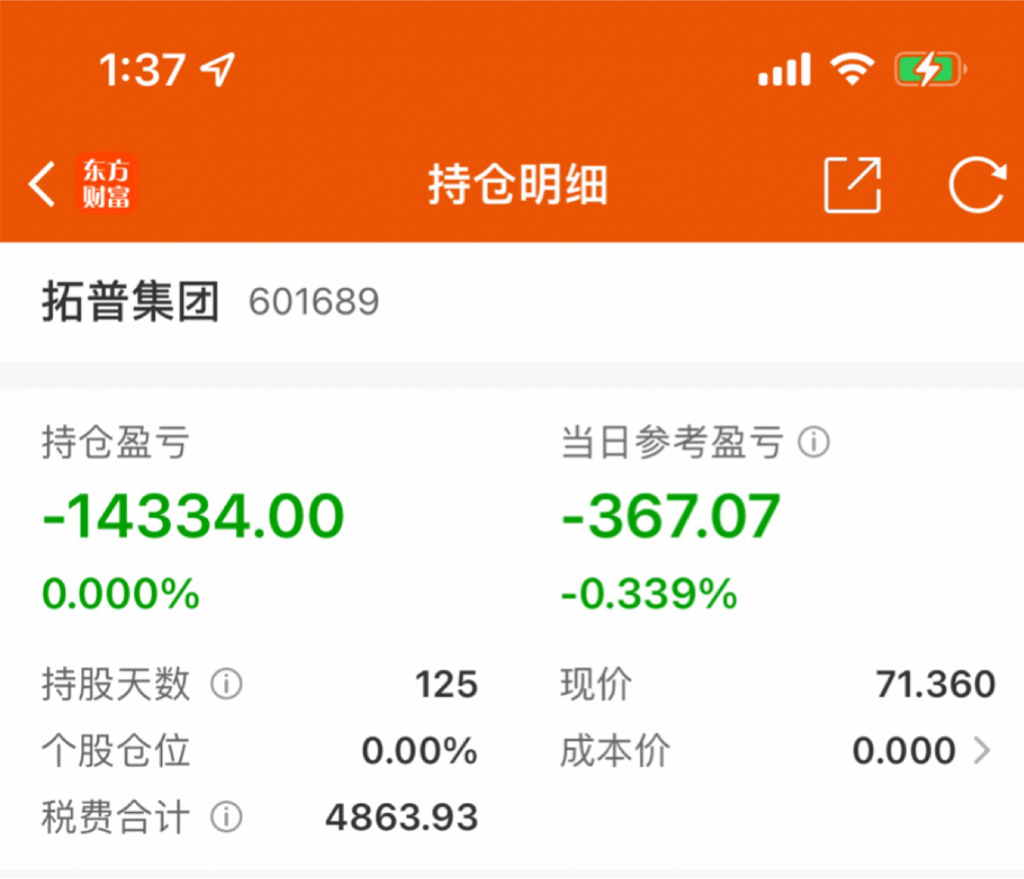 $拓普集团(SH601689)$ 持股120多天,光税就快5000了,实在坚持不下去了,祝留下的发财吧,换个机器人股了,再见